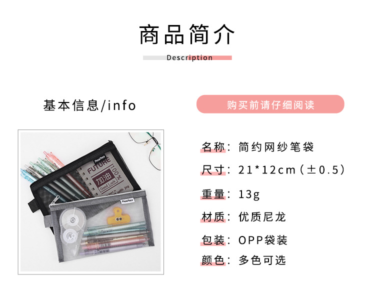 Wow 맞춤형 투명 메쉬 연필 가방 문구 가방 학생 및 어린이 대용량 연필 가방 펜 상자 고급 특별스토어 가기