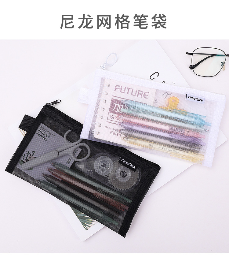 Wow 맞춤형 투명 메쉬 연필 가방 문구 가방 학생 및 어린이 대용량 연필 가방 펜 상자 고급 특별