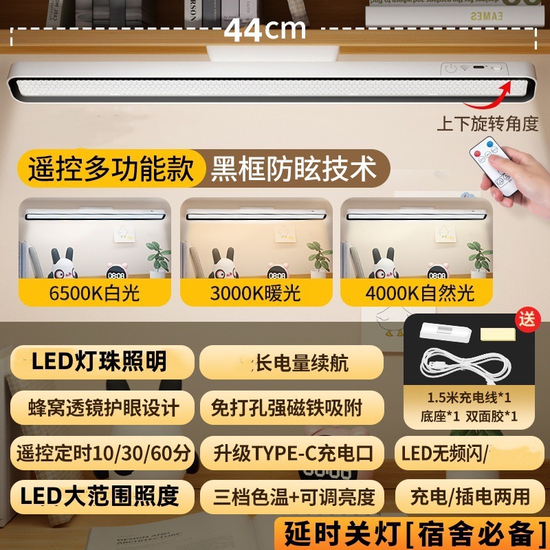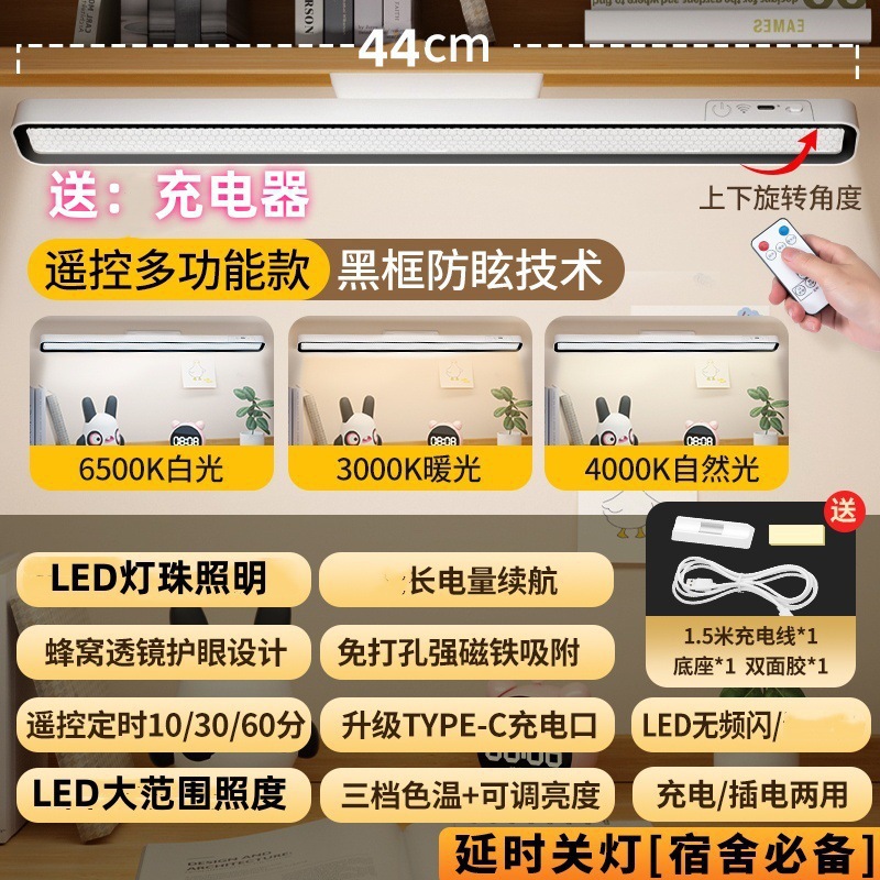 • 44cm 화이트 필라이트 리모콘 모델 [충전 및 플러그인 + 디밍 및 색상 조정 + 회전 각도] + 충전기 + USB 충전 케이블