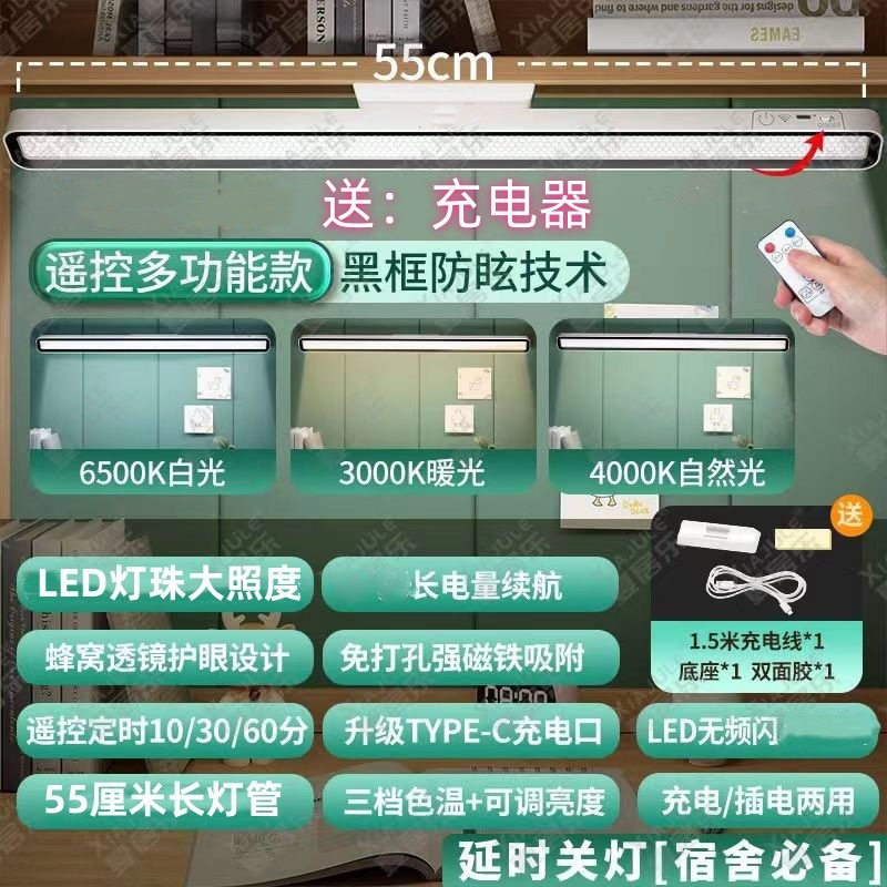 • 55cm 화이트 필라이트 리모콘 모델 [충전 및 플러그인 + 디밍 및 색상 조정 + 회전 각도] + 충전기 + USB 충전 케이블
