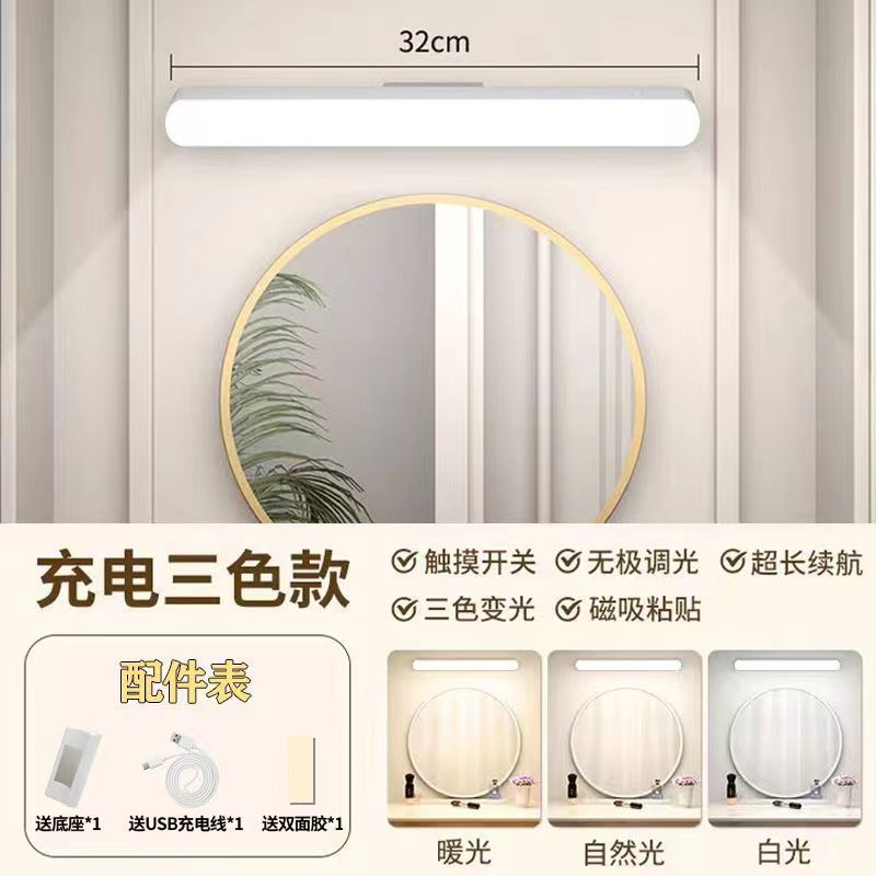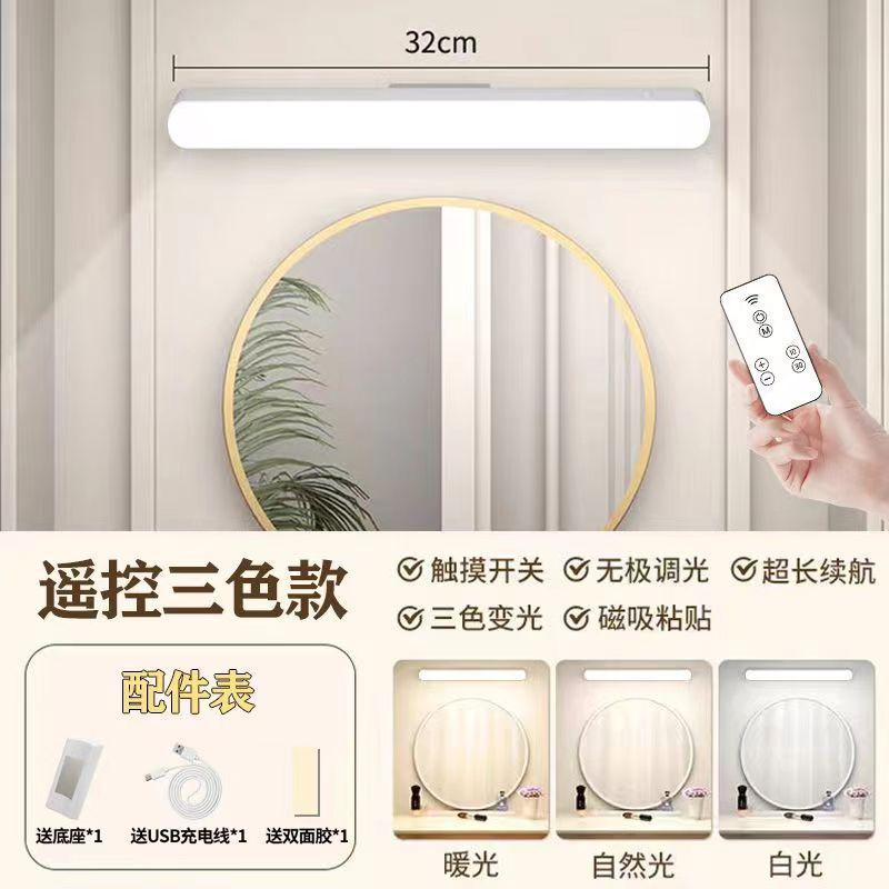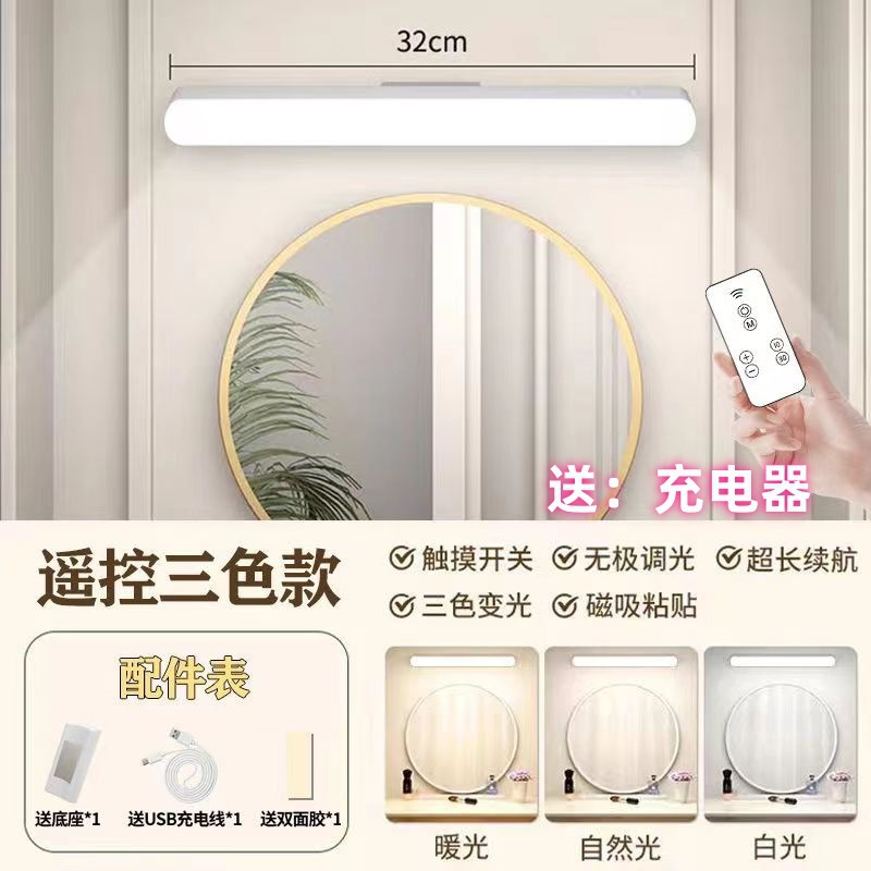 자기 흡입 주방 충전 드레싱 테이블 채우기 빛 원격 제어 램프 기숙사 램프 천공 거울없는 전면 램프 메이크업 램프
