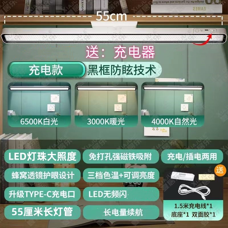 • 55cm 화이트 필라이트 충전 모델 [충전 및 플러그인 + 디밍 및 색상 조정 + 회전 각도] + USB 충전 케이블