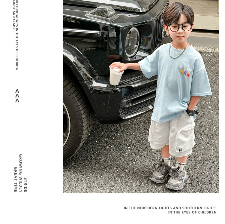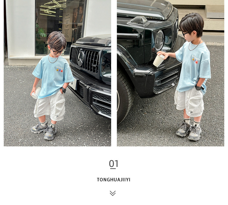 동화 메모리 소년의 반팔 티셔츠 여름 2025 새로운 어린이 여름 면화 톱 소년의 길거리 조수