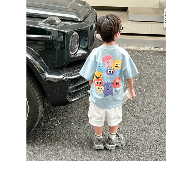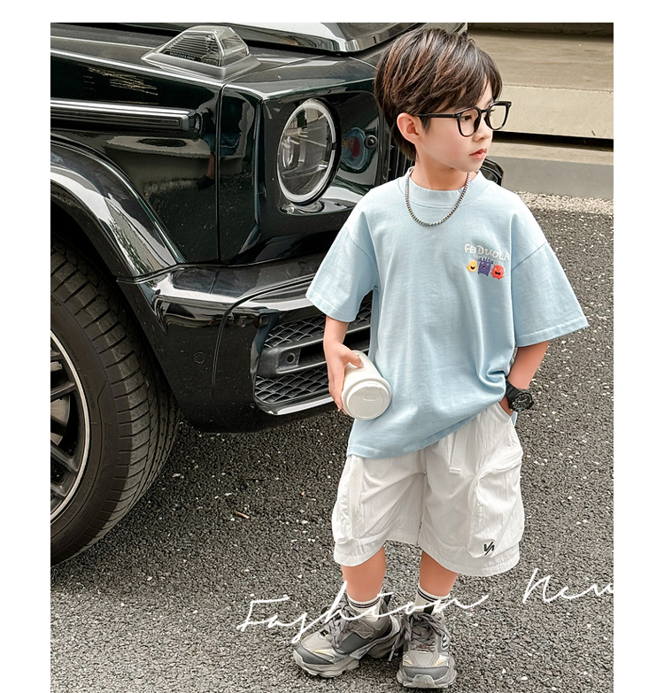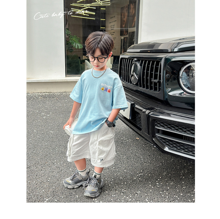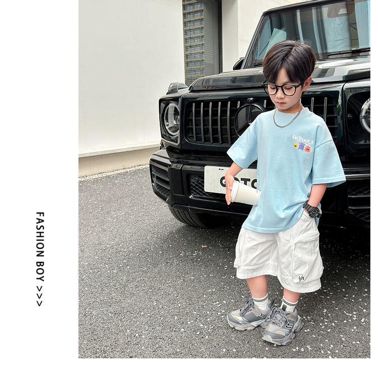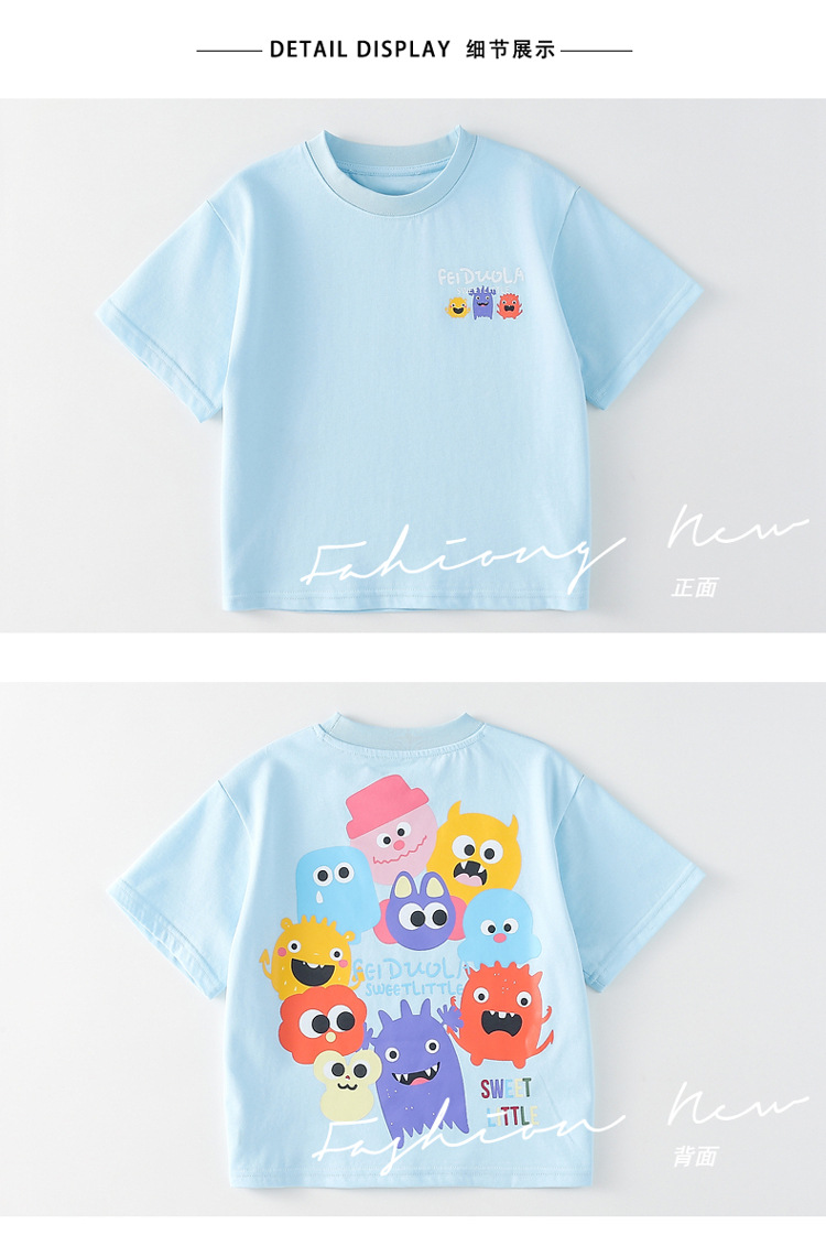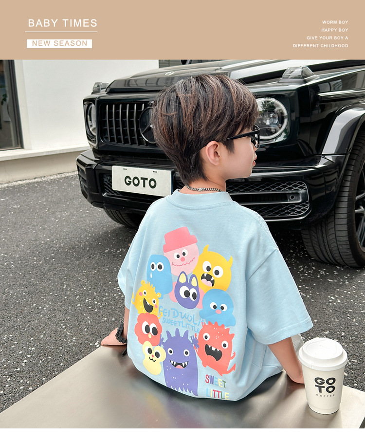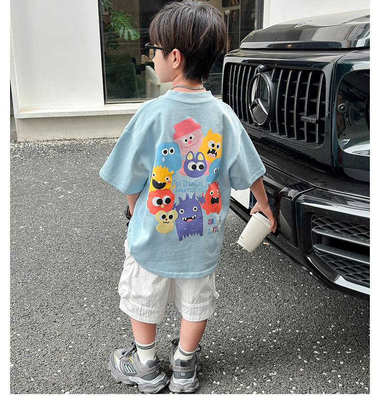 동화 메모리 소년의 반팔 티셔츠 여름 2025 새로운 어린이 여름 면화 톱 소년의 길거리 조수스토어 가기