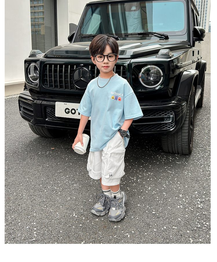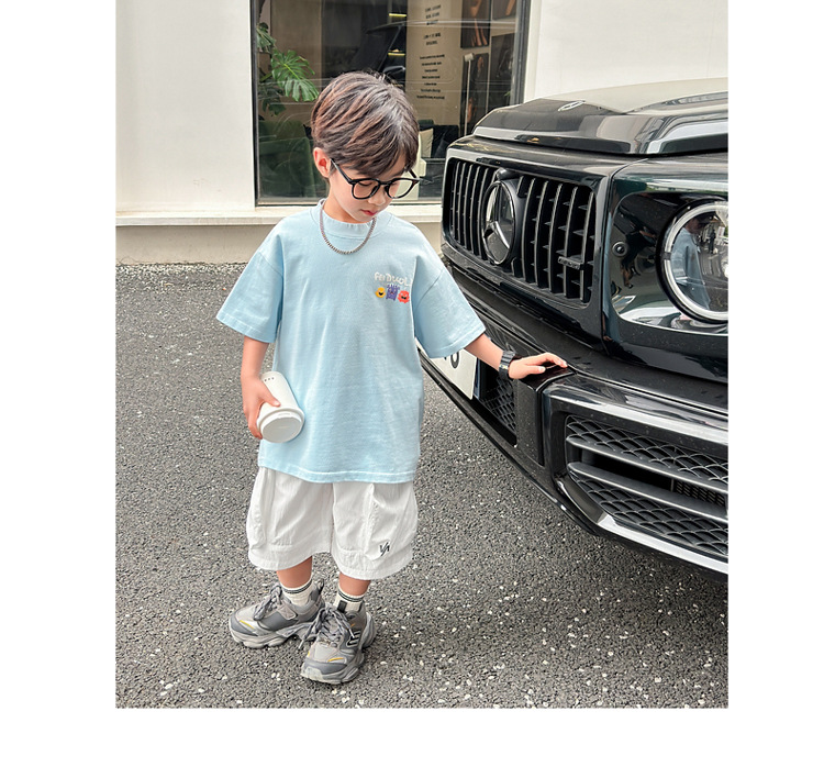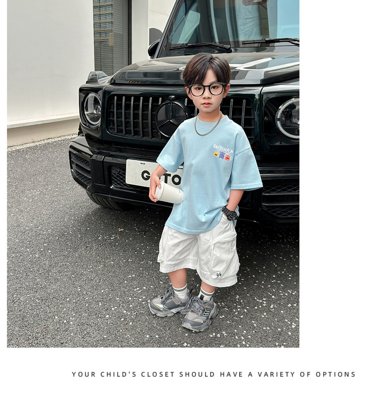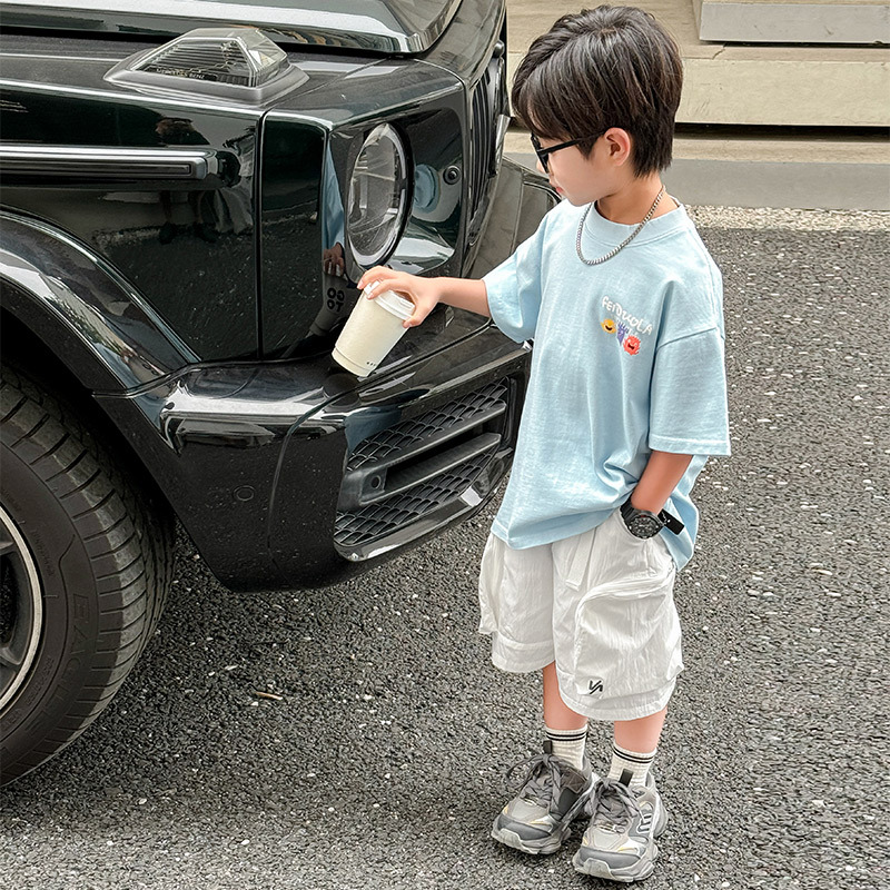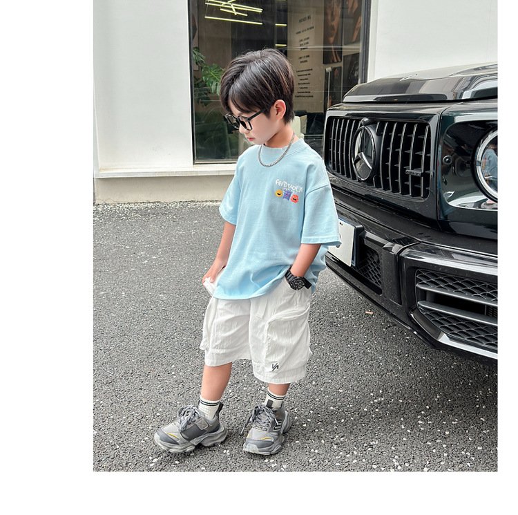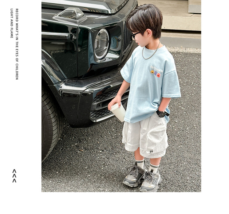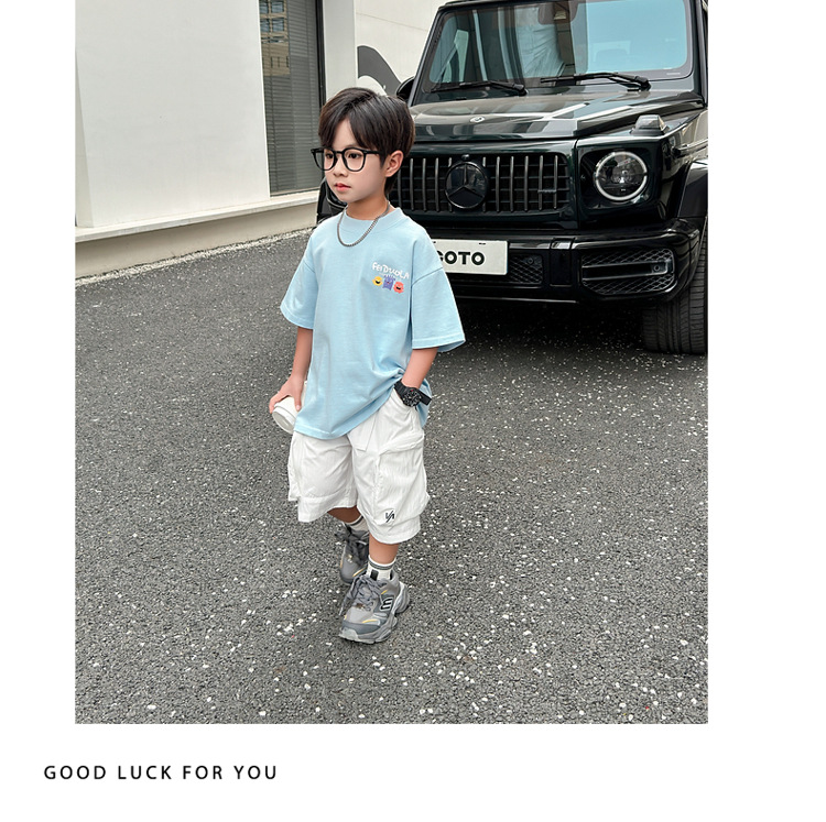 동화 메모리 소년의 반팔 티셔츠 여름 2025 새로운 어린이 여름 면화 톱 소년의 길거리 조수스토어 가기