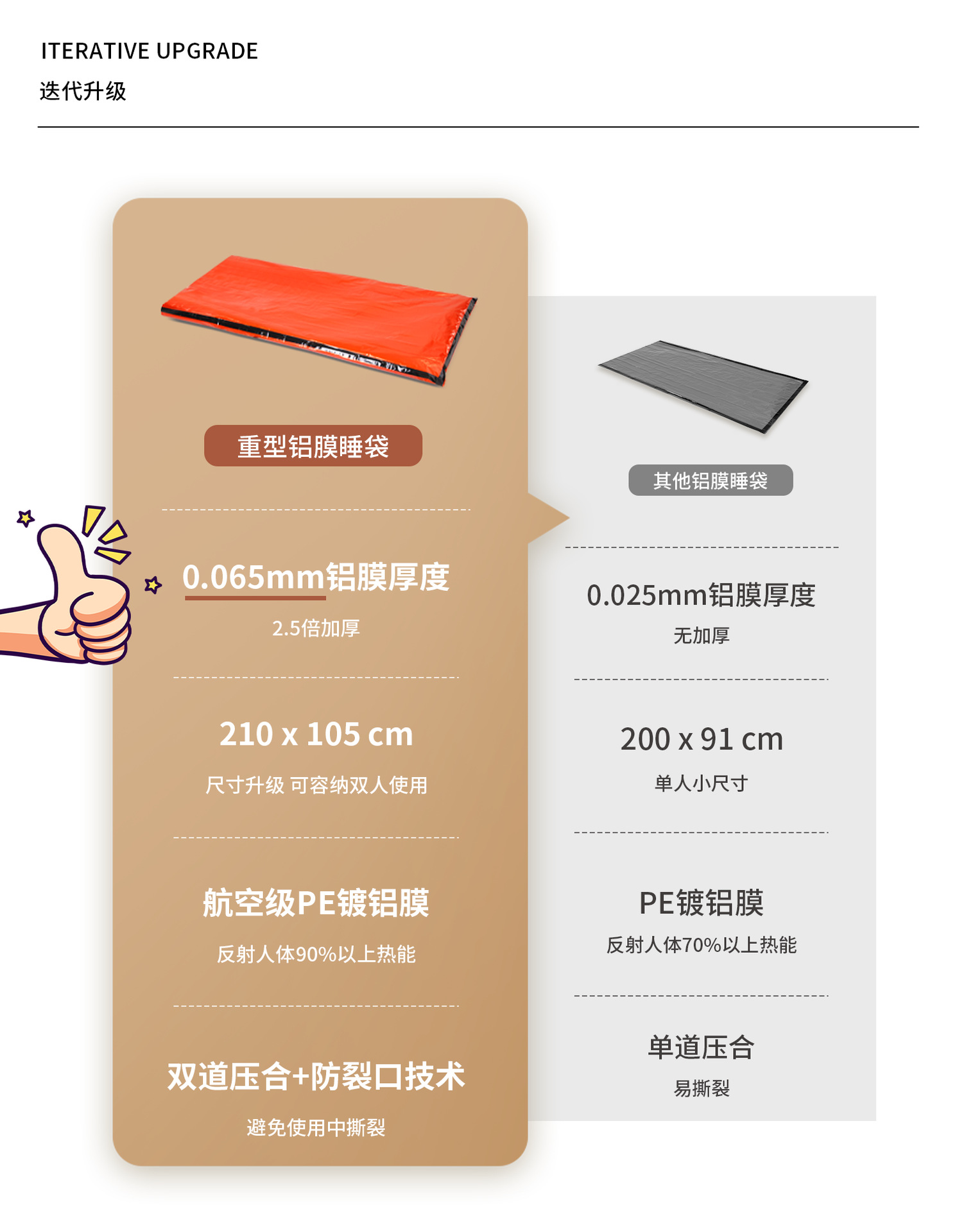 LUCKSTONE 두꺼운 알루미늄 필름 생존 침낭 | 210*105CM 더 넓어진 이중 사용 저온 따뜻함 및 찢어짐 방지