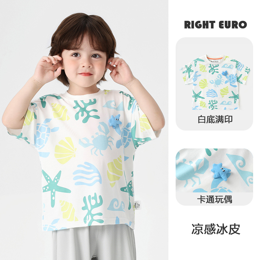 오른쪽 유럽 소년 티셔츠 여름 옷 2025 새로운 아동복 아동용 반팔 탑 반팔 여름 옷