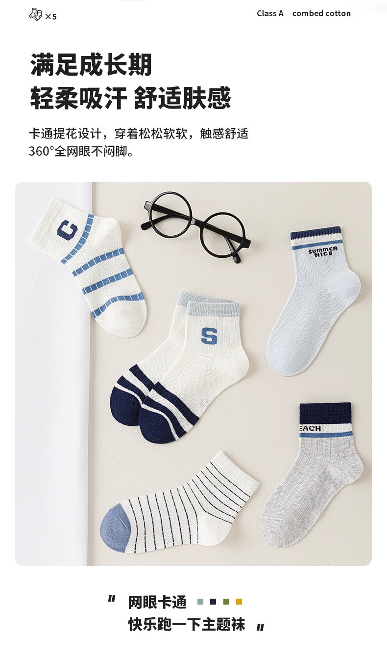 6 손가락 마우스 양말 도매 어린이 양말 소년 여름 얇은 큰 어린이 학생 어린이 소년 메쉬 튜브 양말스토어 가기