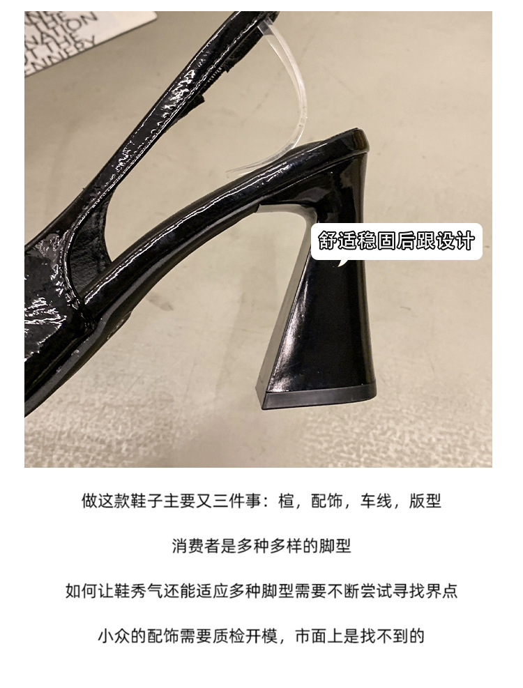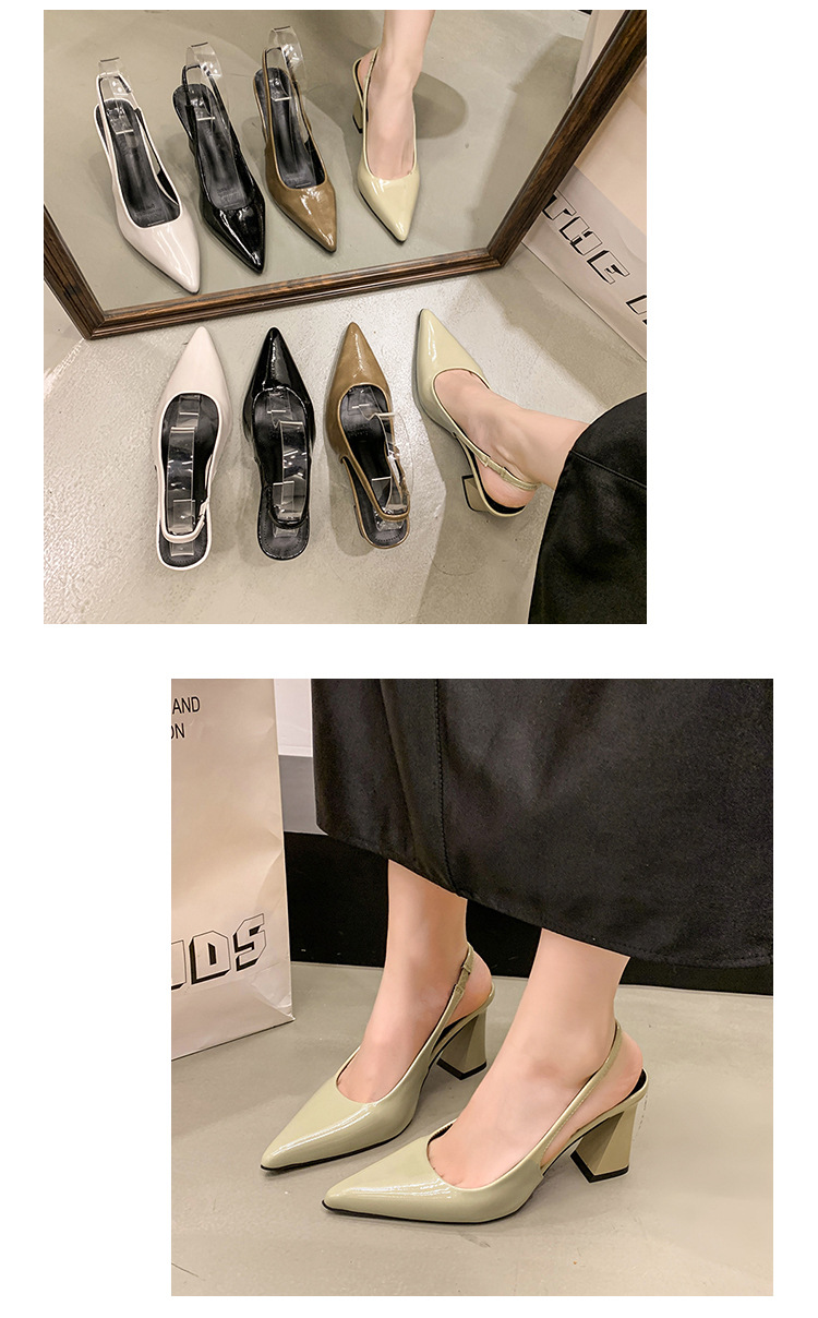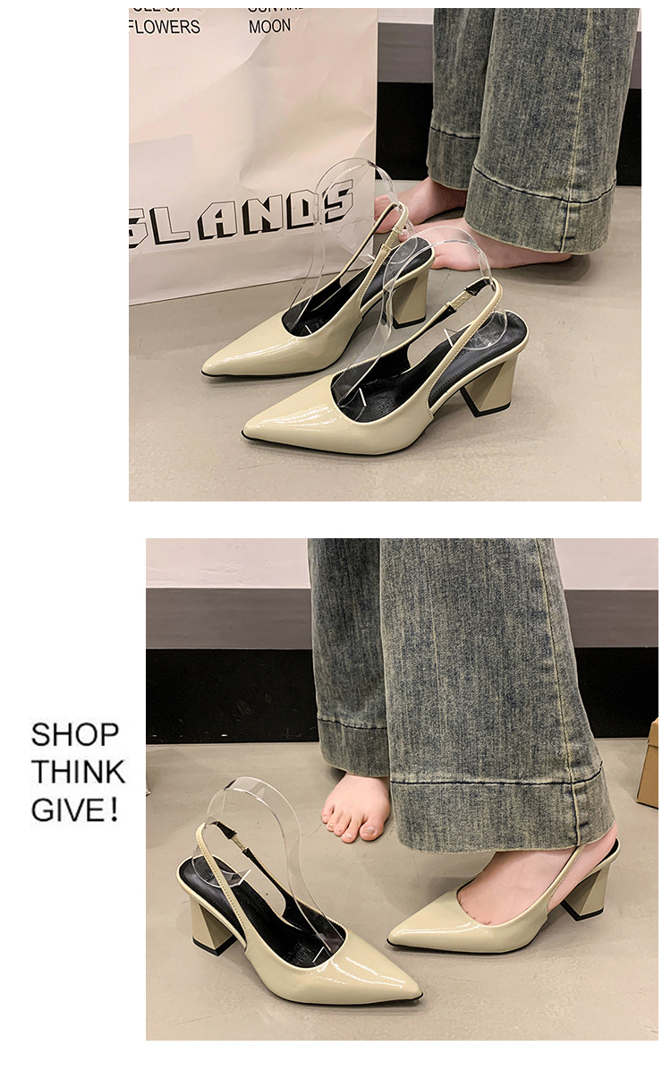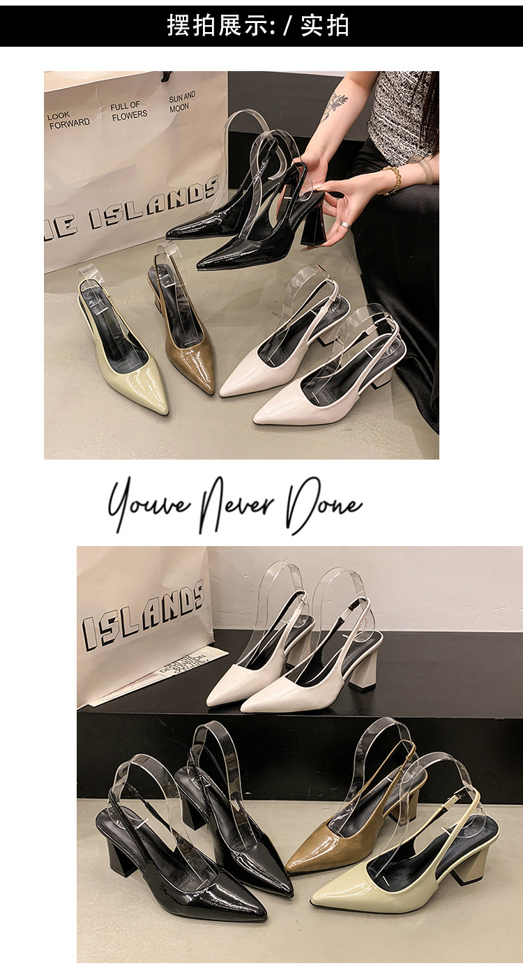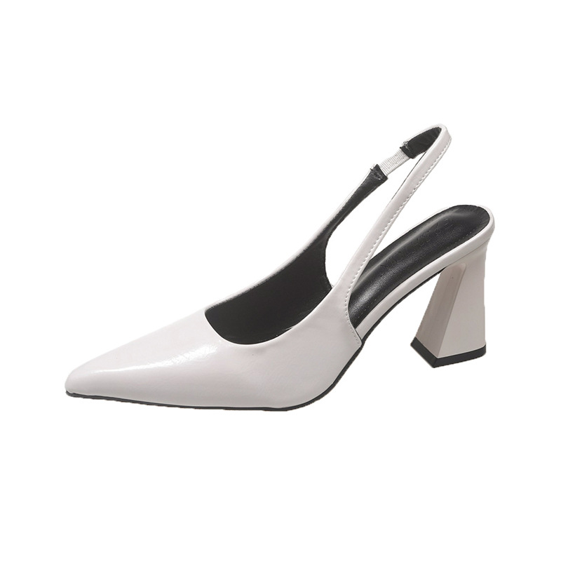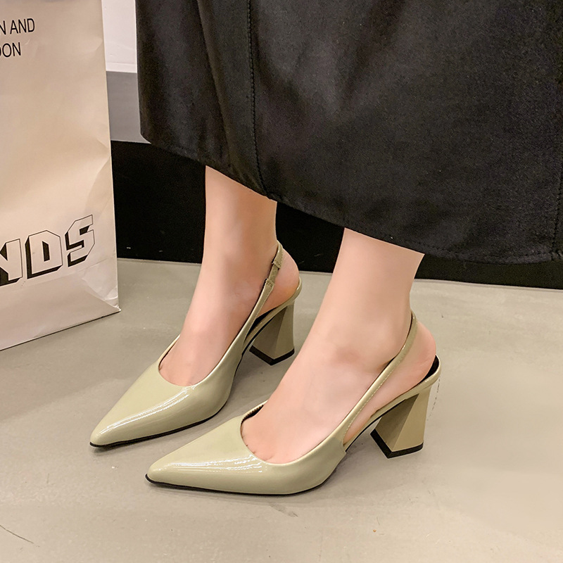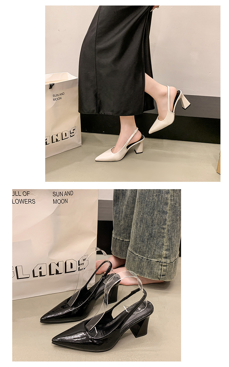 플러스 사이즈 하이힐 2025 신작 봄 여름 프렌치 포인티드 토 하이힐 여성 두꺼운 굽 싱글 슈즈 뒤에 빈 발가락 샌들스토어 가기