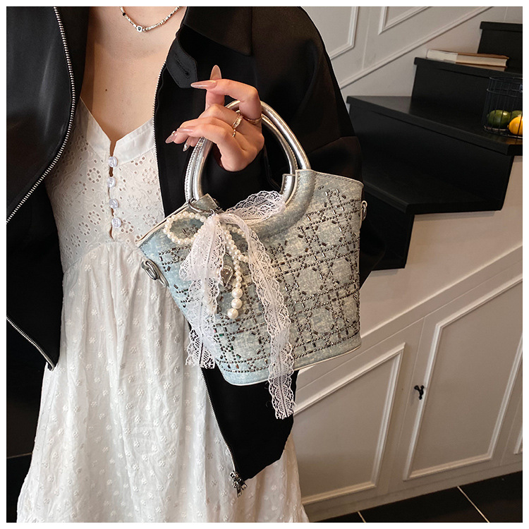 2025 여름 레트로 새로운 핸드백 하이 엔드 웨스턴 스타일 패션 숄더 백 리벳 라인스톤 할로우 크로스 백