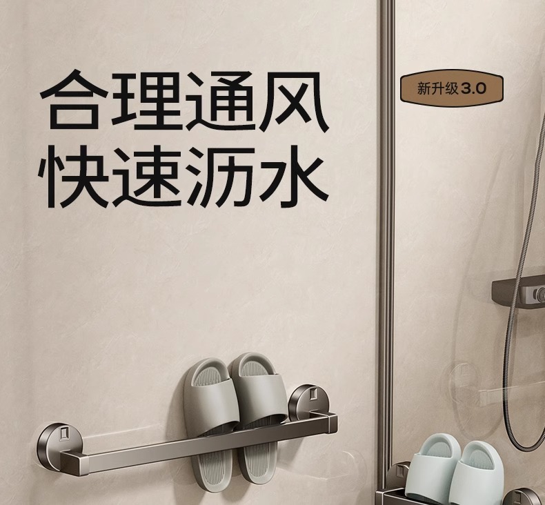 욕실 흡입컵 슬리퍼걸이, 화장실 펀치프리 화장실 벽걸이형 수납선반, 슬리퍼 배수걸이 수납용품