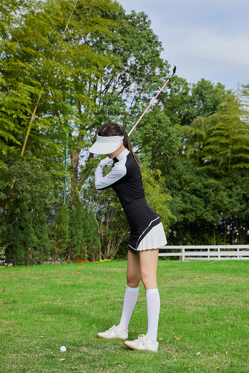 골프웨어 여성복 봄 스탠드 칼라 속건성 긴팔 티셔츠 탑 스포츠 긴 바지 플리츠 짧은 스커트