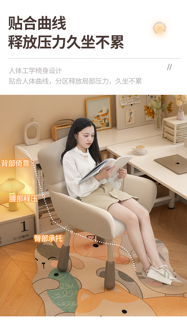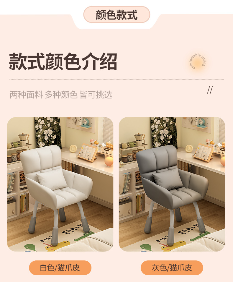 기숙사 대학생을 위한 의자, 편안하고 장시간 앉아 있는 소녀의 침실 컴퓨터 의자, 등받이 학습 의자, 리프팅 가능한 화장 의자