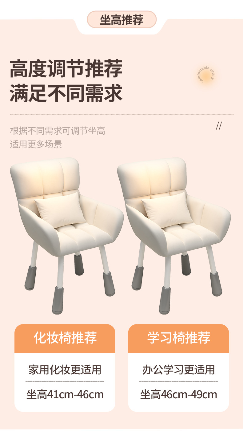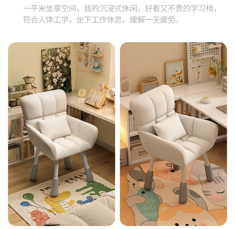 기숙사 대학생을 위한 의자, 편안하고 장시간 앉아 있는 소녀의 침실 컴퓨터 의자, 등받이 학습 의자, 리프팅 가능한 화장 의자스토어 가기