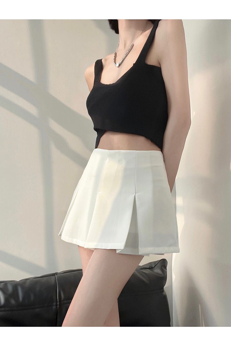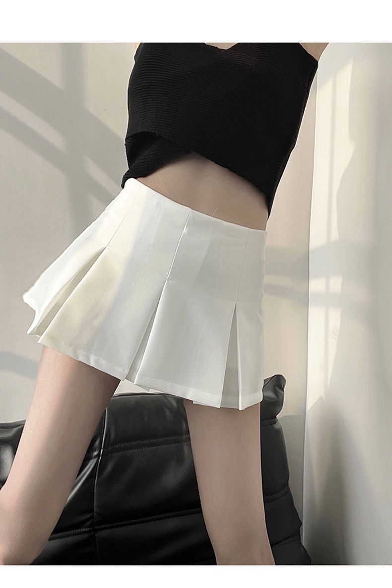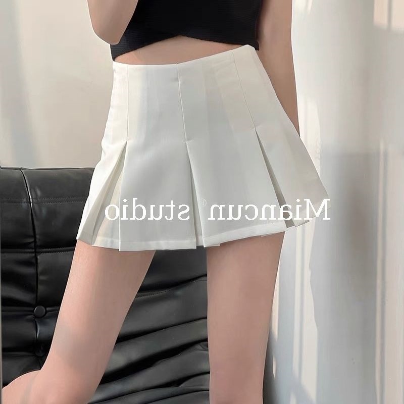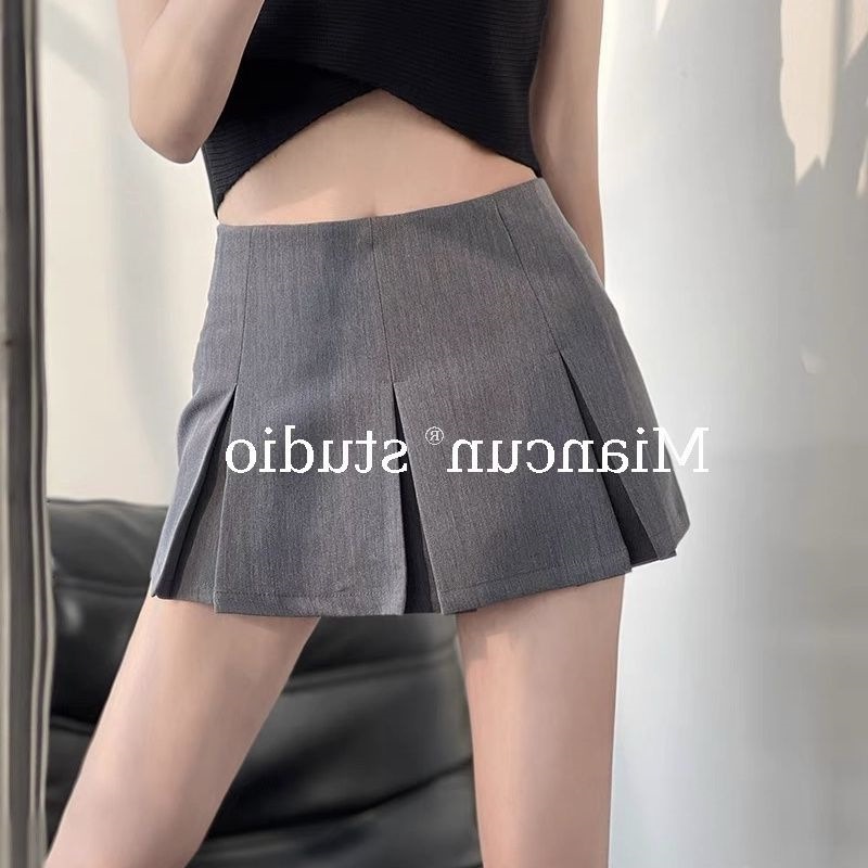 아메리칸 레트로 퓨어 러브 컬리지 스타일 미니 숏팬츠, 나이를 줄여주는 로우웨이스트 와이드 플리츠 스커트, 플리츠 스커트, 다리가 길어지는 짧은 스커트