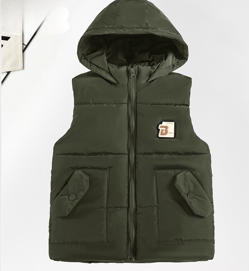 아동 대외 무역 조끼 2025 가을, 겨울 후드 두꺼운 소년 따뜻한 조끼 한국어 버전 어린이를위한 다용도 조끼스토어 가기