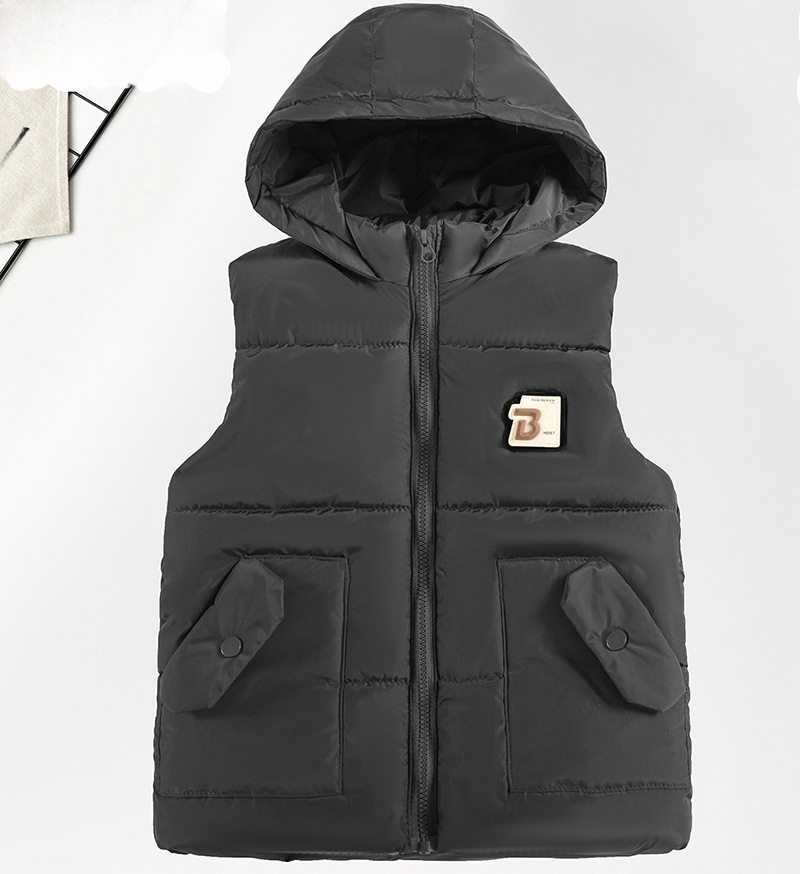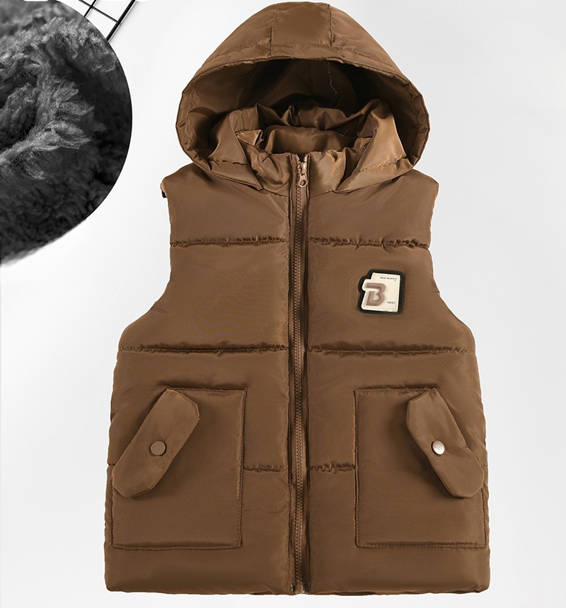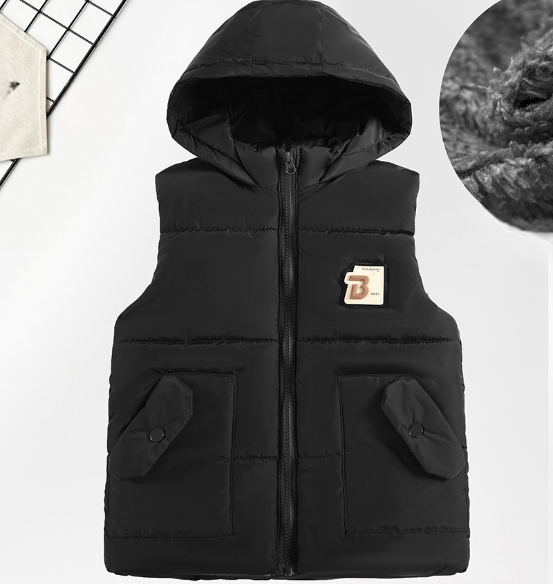 아동 대외 무역 조끼 2025 가을, 겨울 후드 두꺼운 소년 따뜻한 조끼 한국어 버전 어린이를위한 다용도 조끼