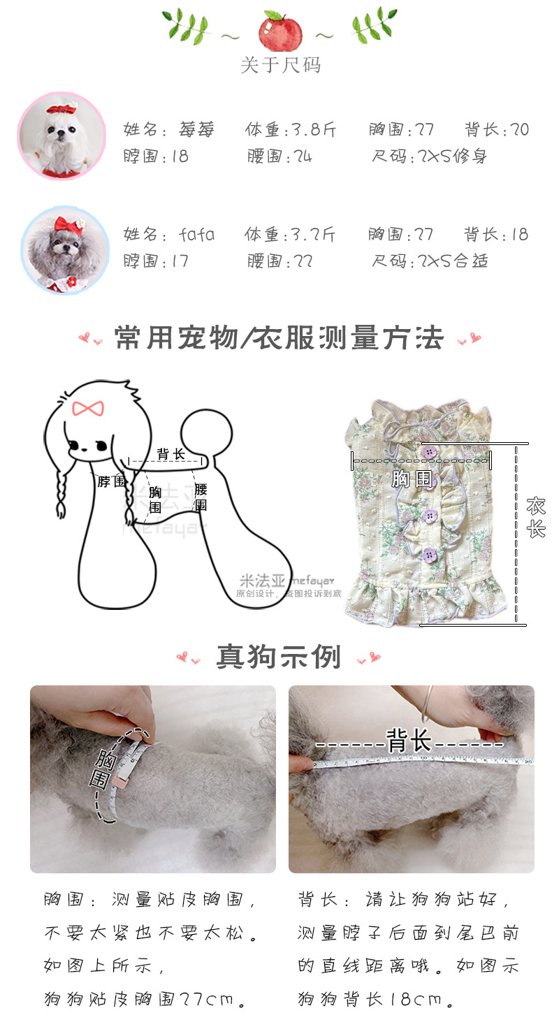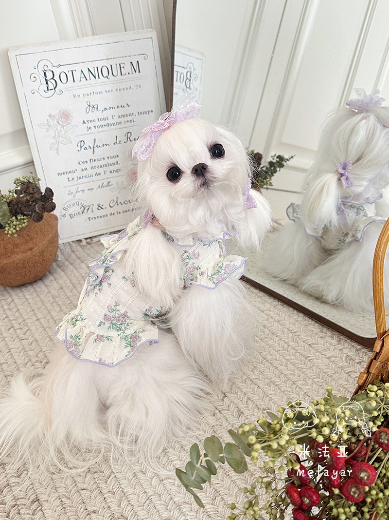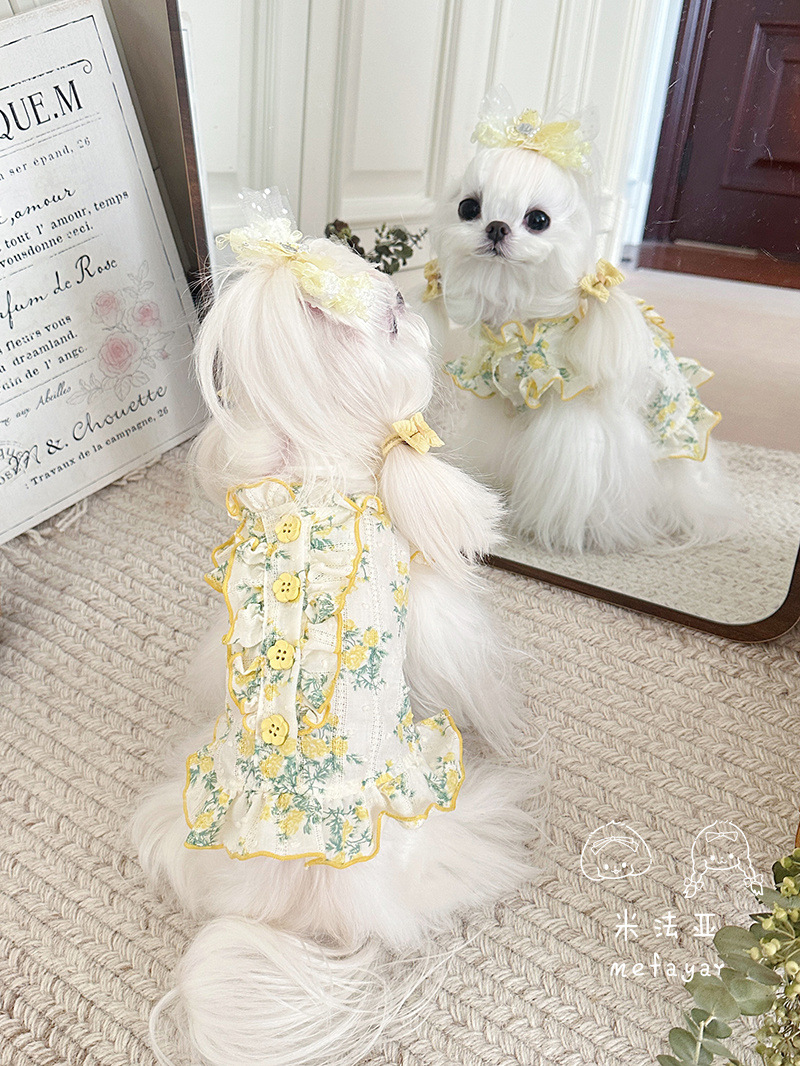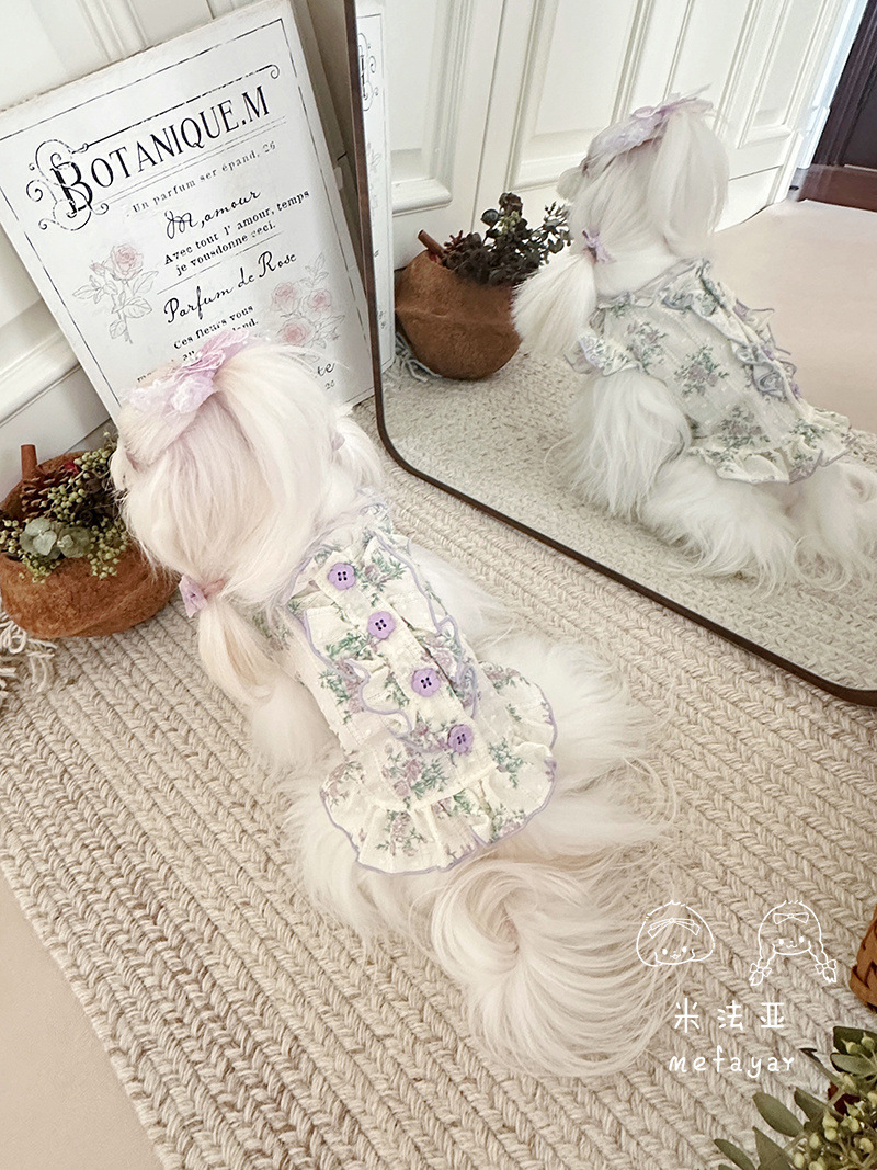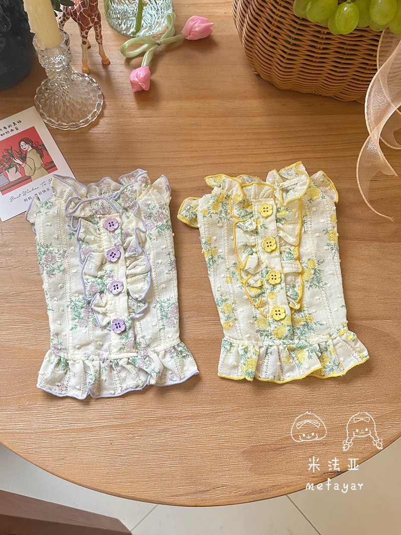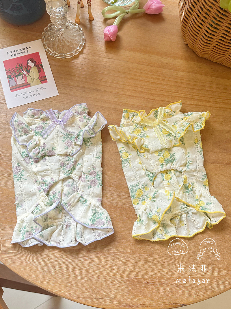 Mifaya Amazon 고양이와 개 옷 봄과 여름 꽃 무늬 스커트 순수 코튼 얇은 작은 꽃 레이스 플라잉 슬리브 공주 스커트스토어 가기