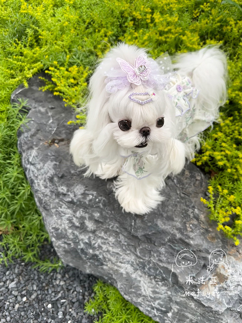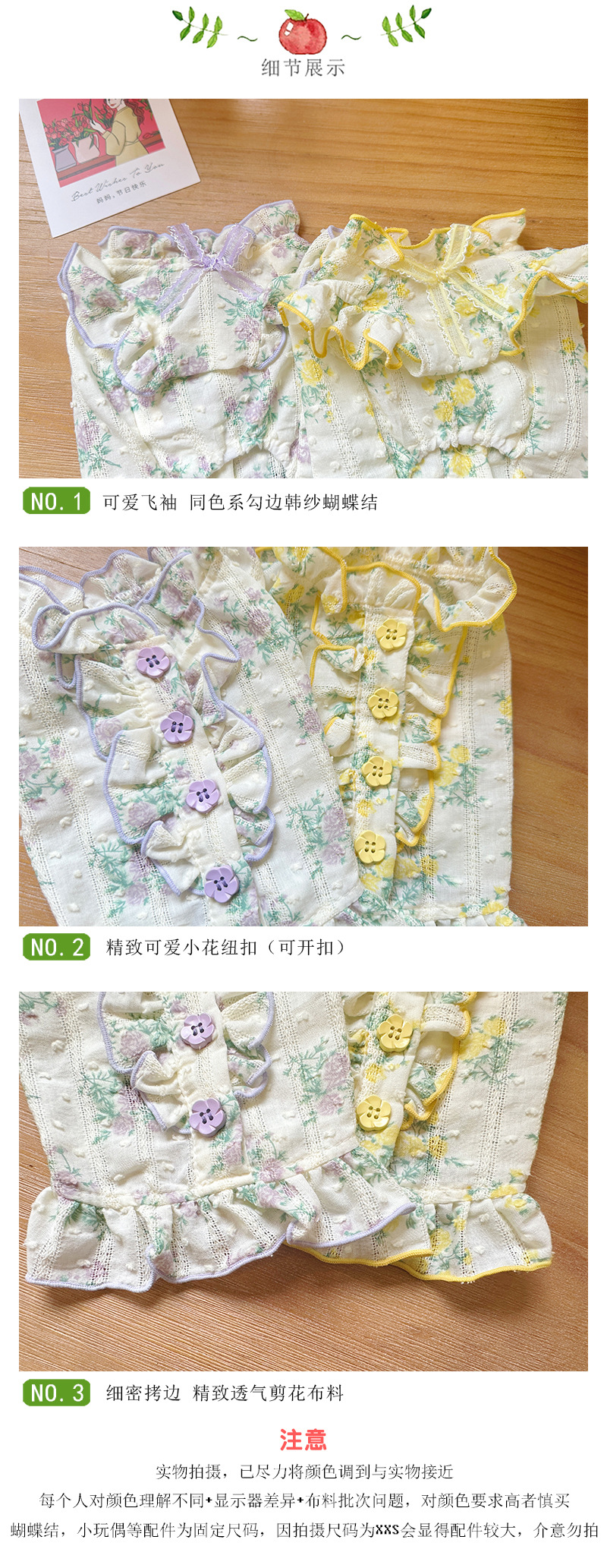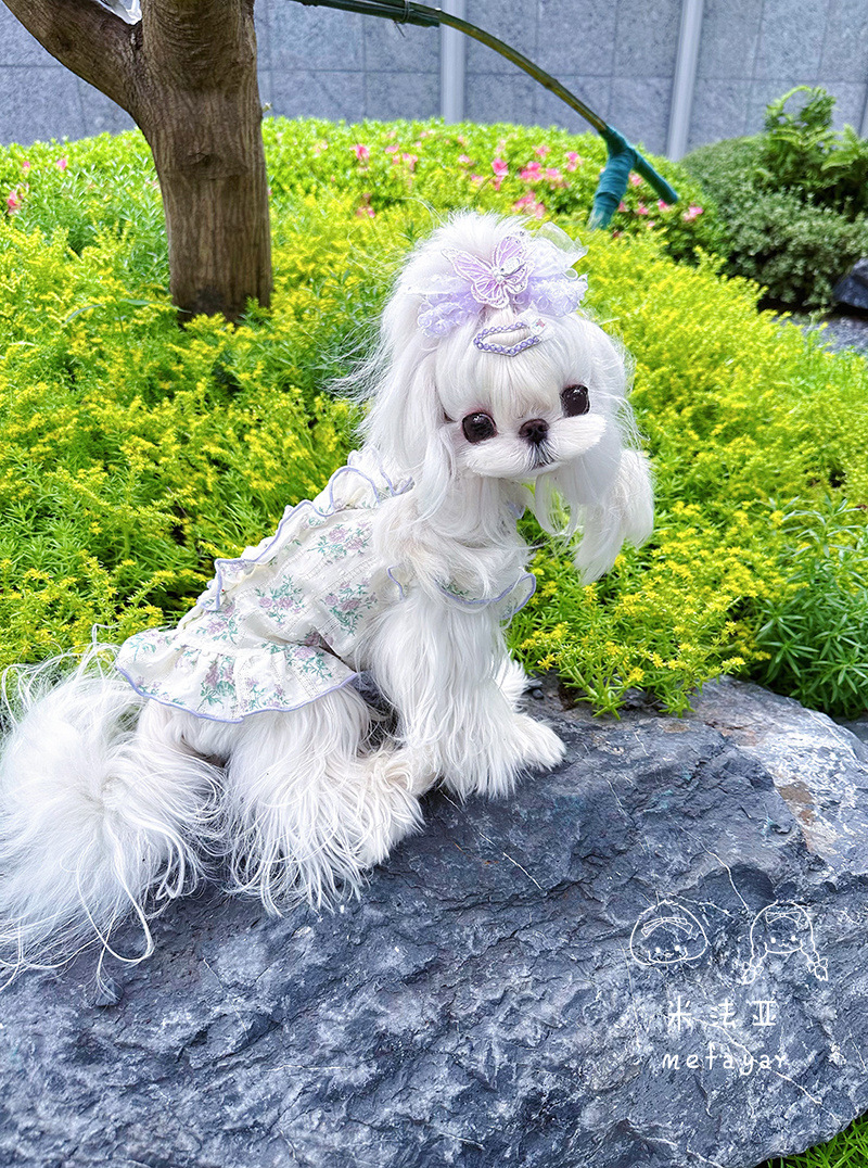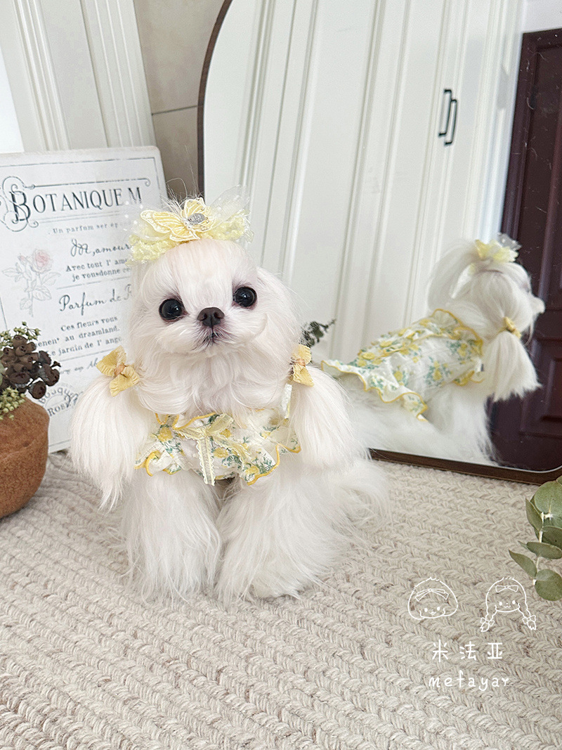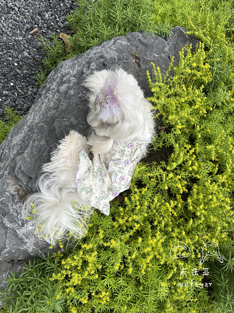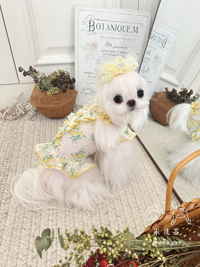 Mifaya Amazon 고양이와 개 옷 봄과 여름 꽃 무늬 스커트 순수 코튼 얇은 작은 꽃 레이스 플라잉 슬리브 공주 스커트스토어 가기