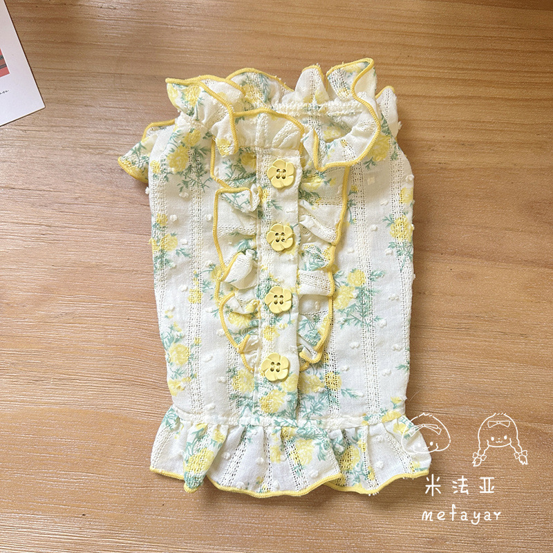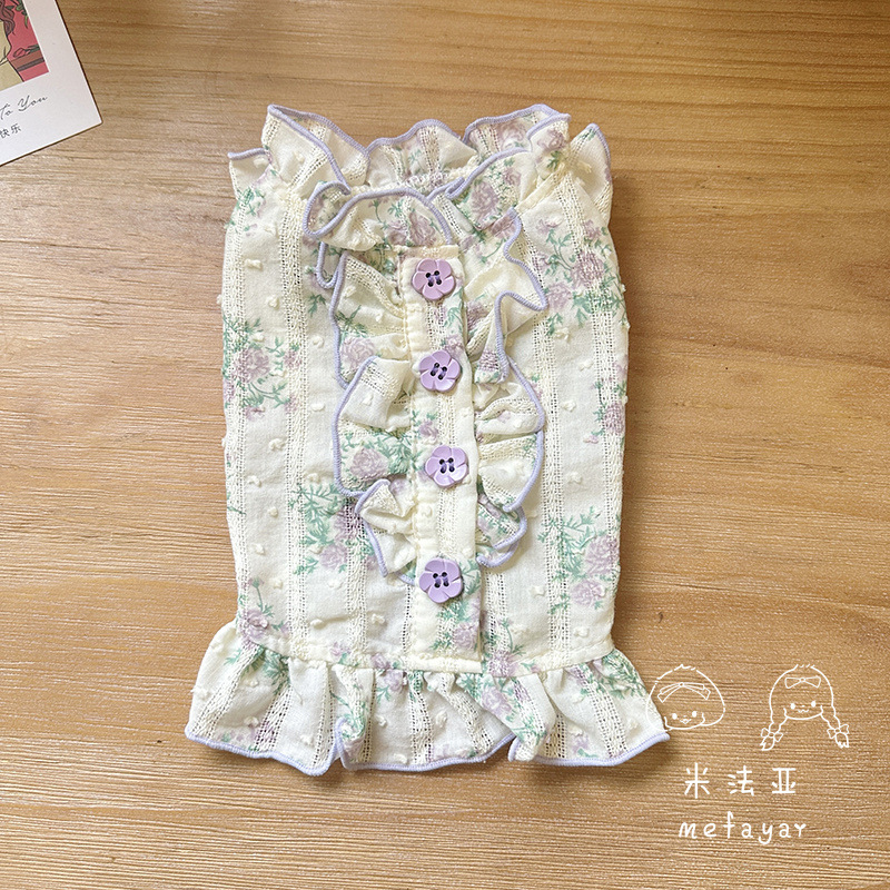 Mifaya Amazon 고양이와 개 옷 봄과 여름 꽃 무늬 스커트 순수 코튼 얇은 작은 꽃 레이스 플라잉 슬리브 공주 스커트