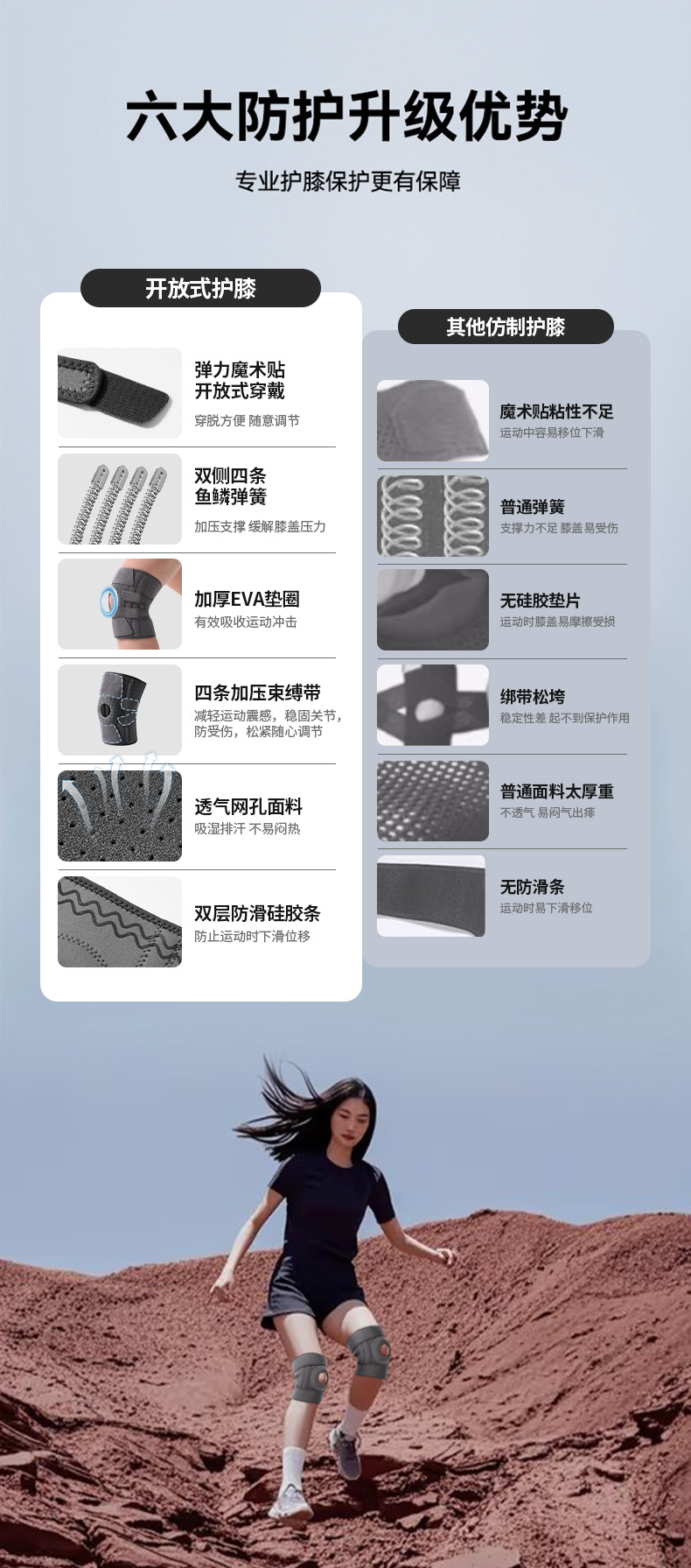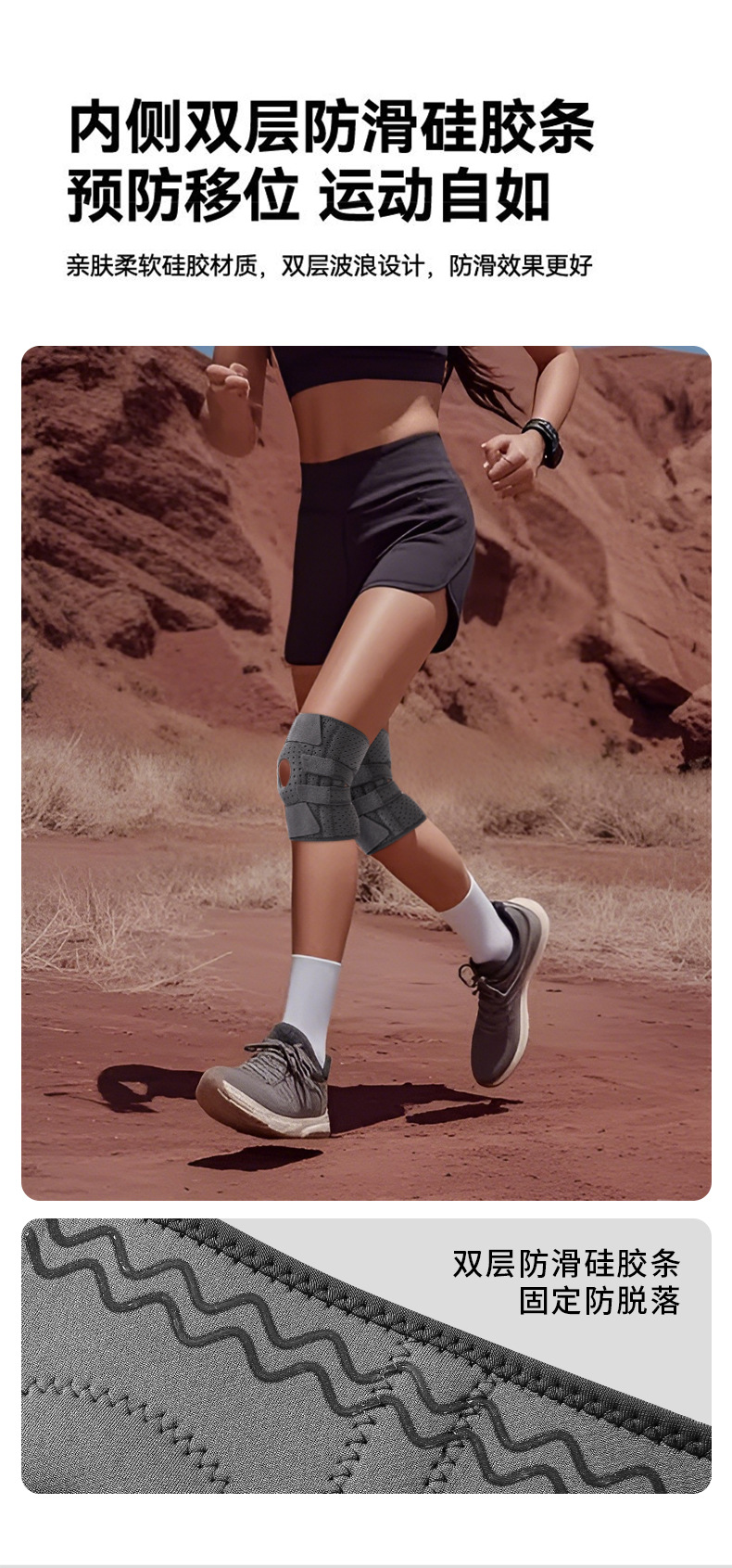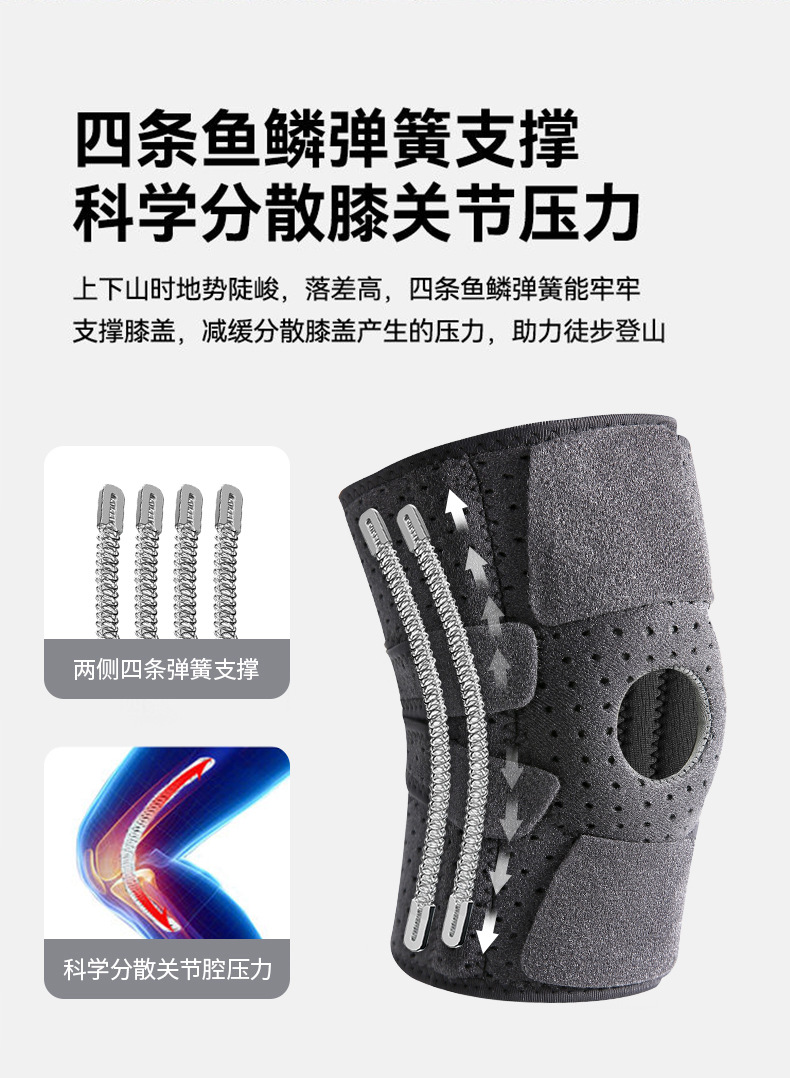 | 运动护膝健身骑行护具透气跑步登山跳绳弹簧支撑加压硅胶防滑护膝 |