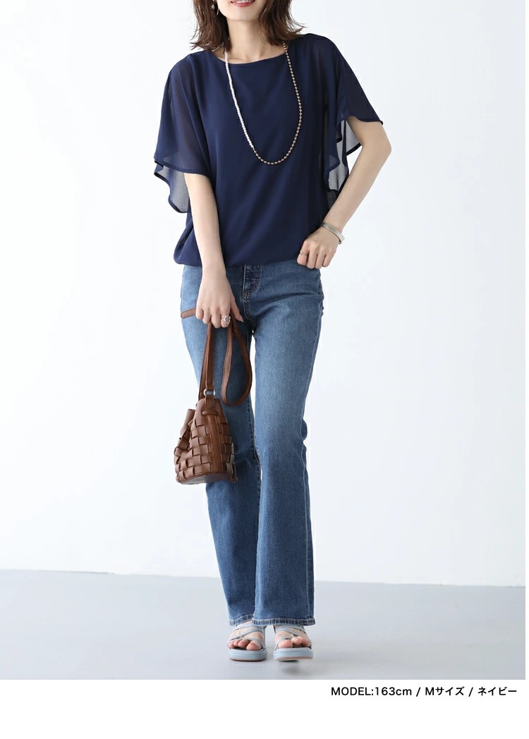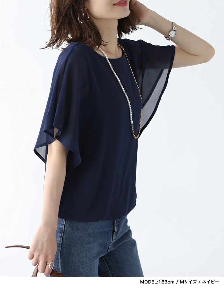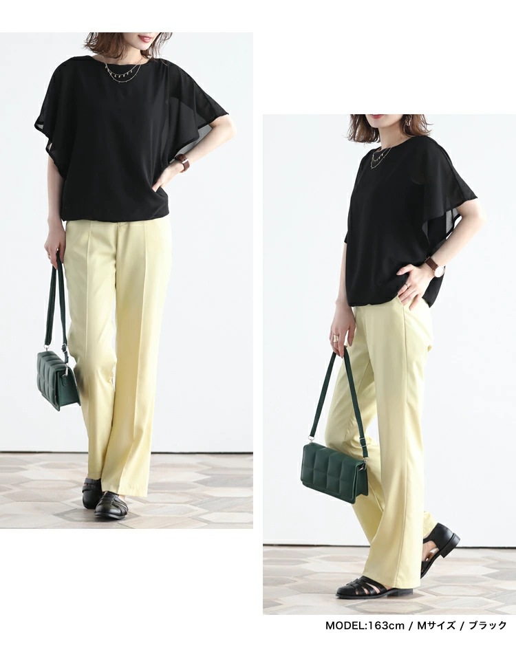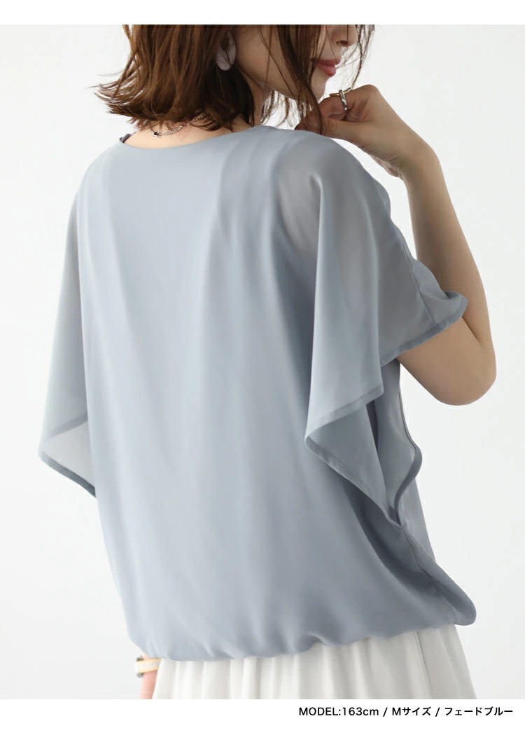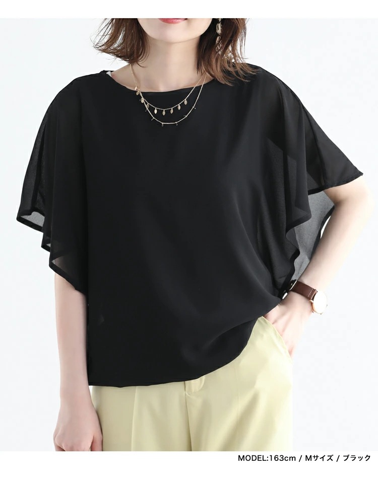 재고 있음 국경 간 일본 및 한국 롯데 2025 여름 신작 민소매 배트 셔츠 루즈 라운드 넥 캐주얼 다용도 쉬폰 셔츠