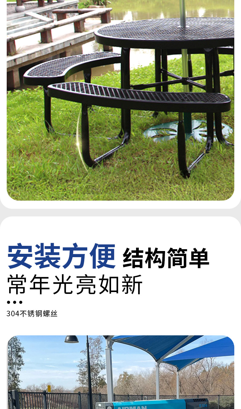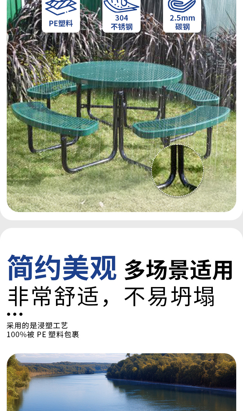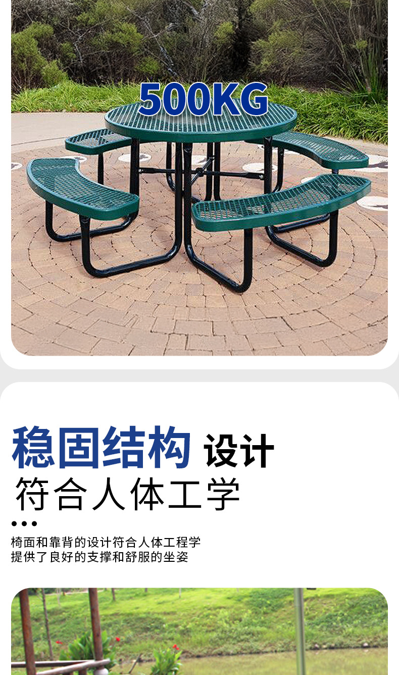 야외 상업용 야외 사각형 열에 담근 플라스틱 금속 테이블과 의자 야외 공원 커뮤니티 테이블 학교 야외 피크닉 테이블