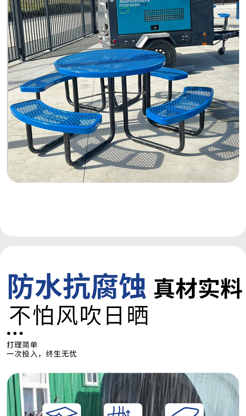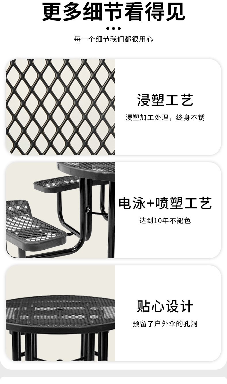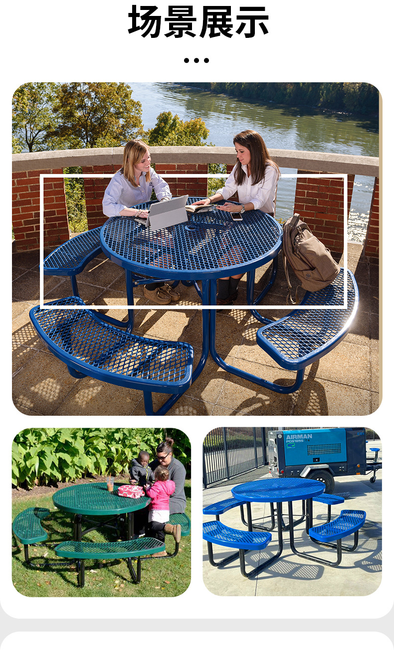 야외 상업용 야외 사각형 열에 담근 플라스틱 금속 테이블과 의자 야외 공원 커뮤니티 테이블 학교 야외 피크닉 테이블스토어 가기