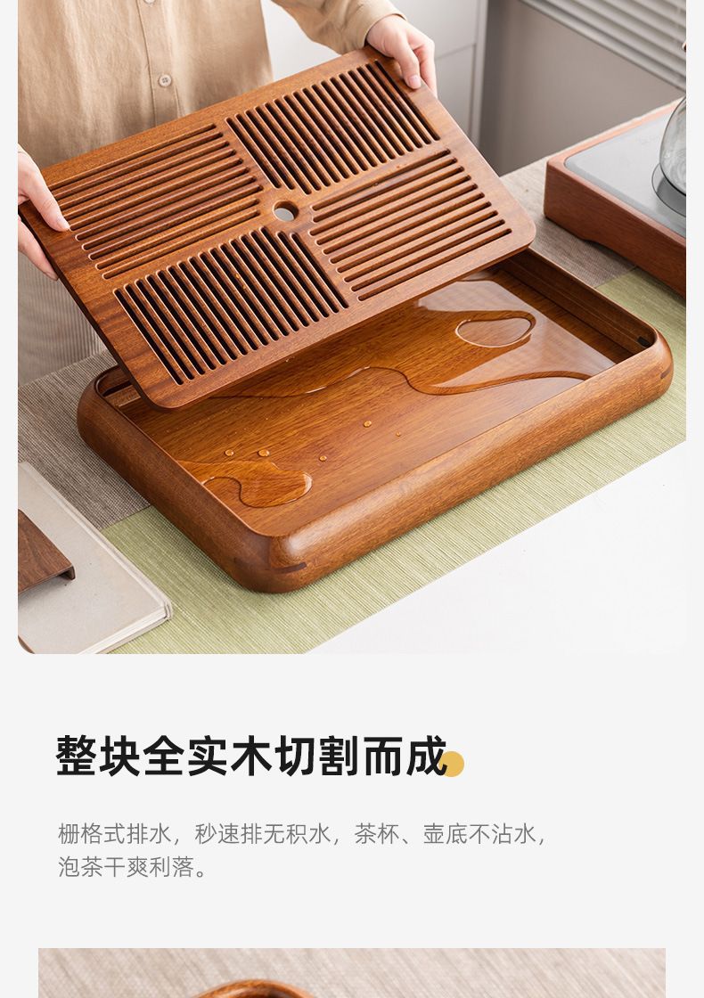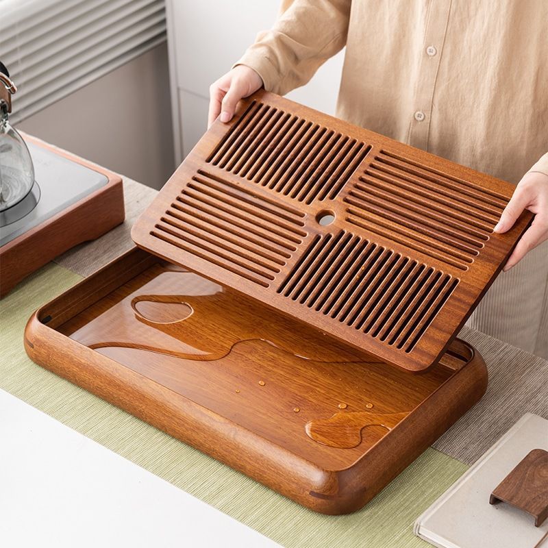 차 트레이 가정용 장미 나무 물 저장 이중 목적 중국 차 쿵푸 차 세트 차 트레이 단단한 나무 건조 테이블