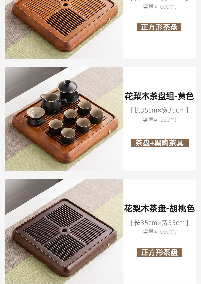 차 트레이 가정용 장미 나무 물 저장 이중 목적 중국 차 쿵푸 차 세트 차 트레이 단단한 나무 건조 테이블스토어 가기