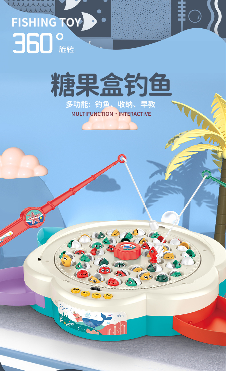어린이 낚시 장난감 회전 사탕 상자 전기 자기 손 눈 조정 사운드 음악 교육 조기 교육 장난감스토어 가기