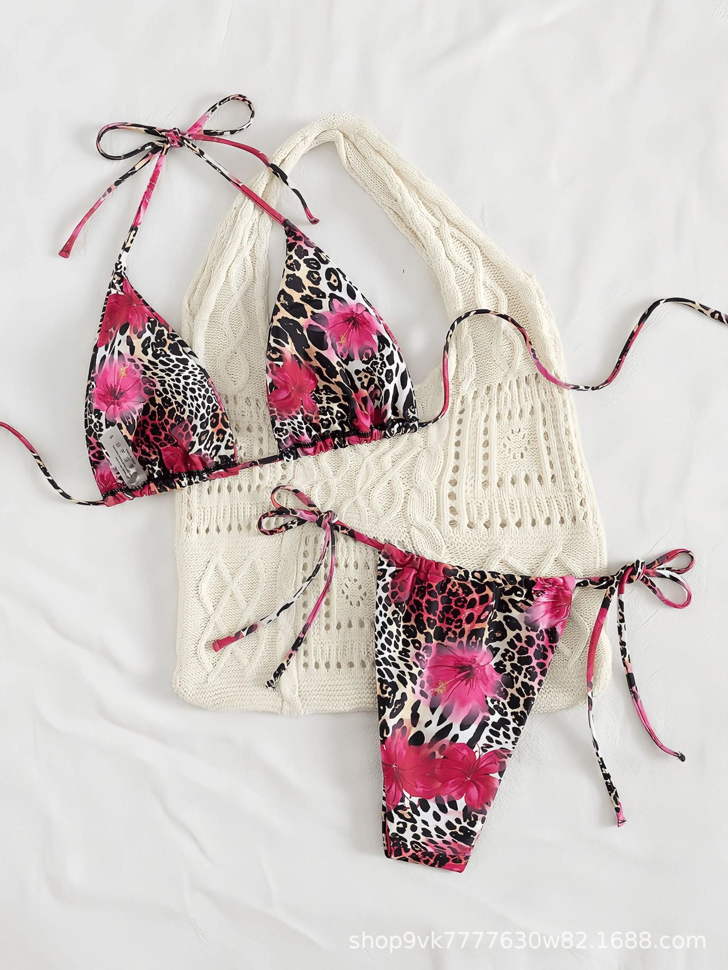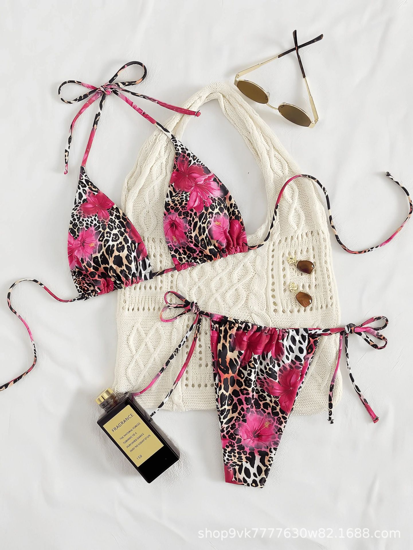 2025 레오파드 프린트 섹시한 백 레이스 업 비키니 보헤미안 수영복 여성 비치 홀리데이 도매스토어 가기