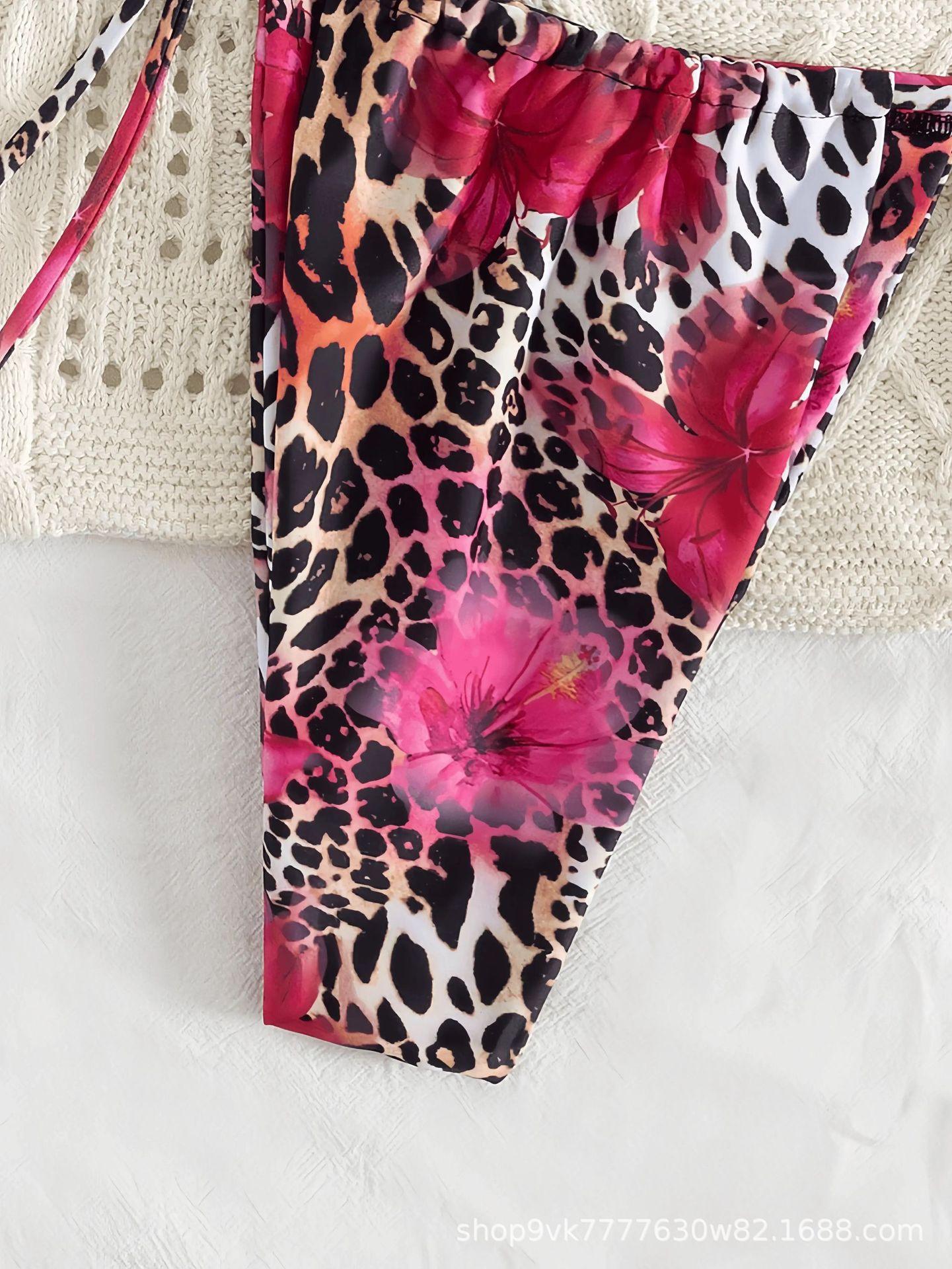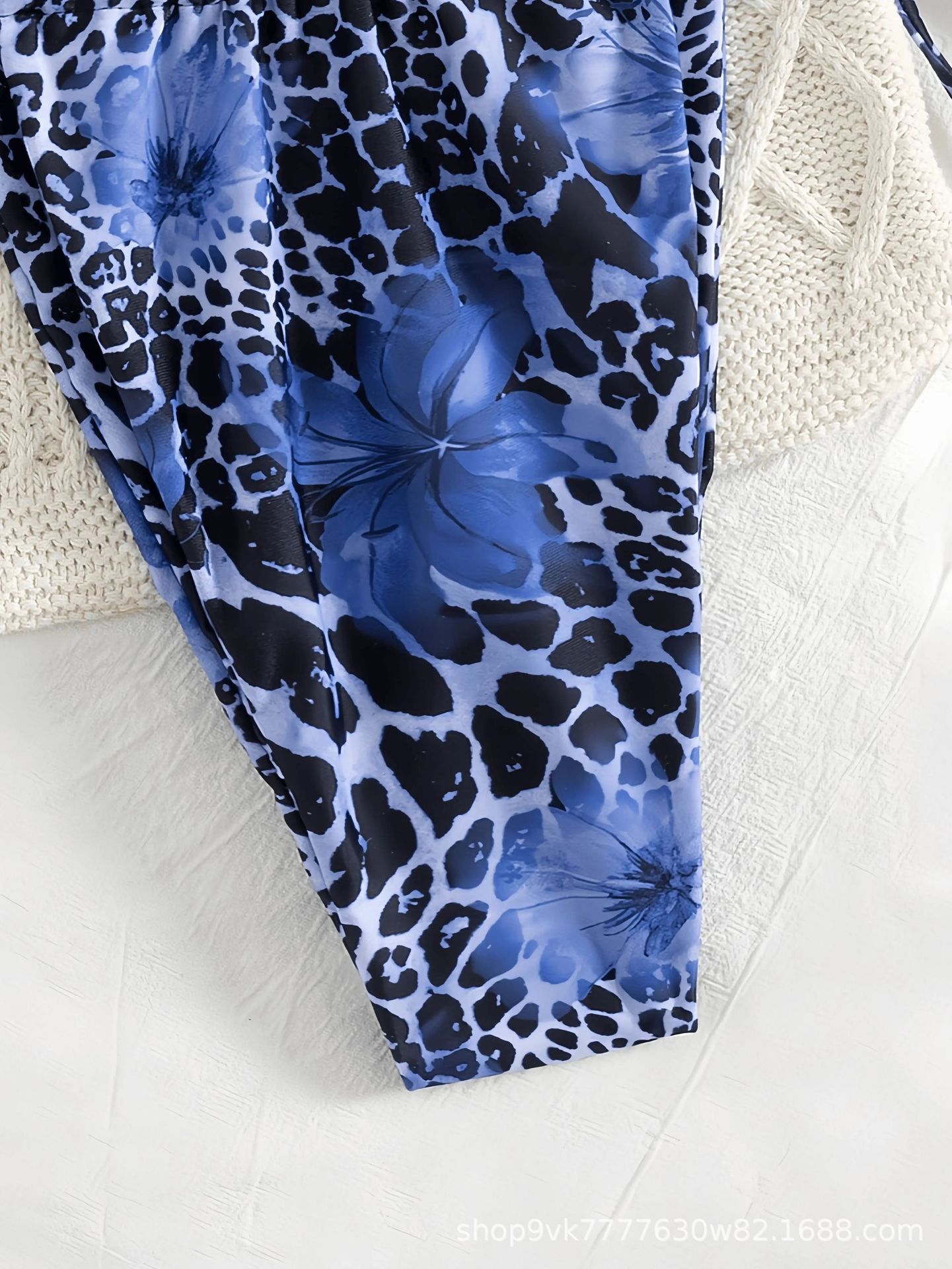2025 레오파드 프린트 섹시한 백 레이스 업 비키니 보헤미안 수영복 여성 비치 홀리데이 도매