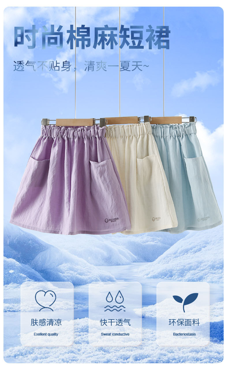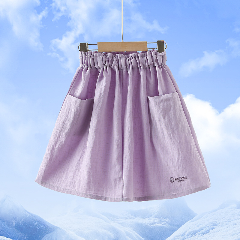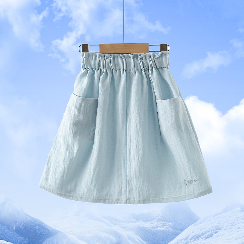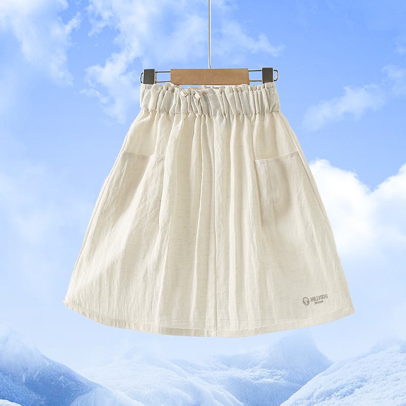여아 스커트 여름 2025 새로운 스타일 중대형 어린이 린넨 슈퍼 멋진 거즈 스커트 주름 A 라인 스커트 어린이 스커트스토어 가기