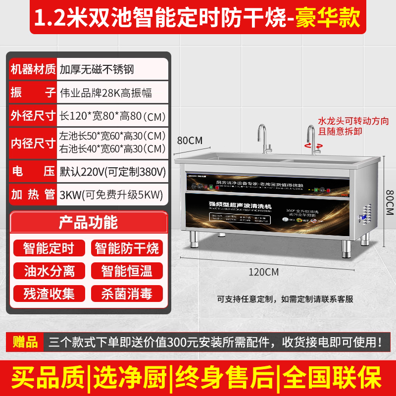 • YouJC1.2m 식기세척기 및 야채세척기 [강한 주파수 진동 + 고압 와전류 + 오존 소독] ±1%
