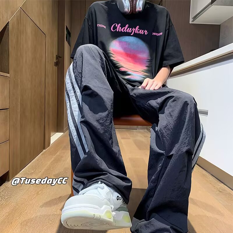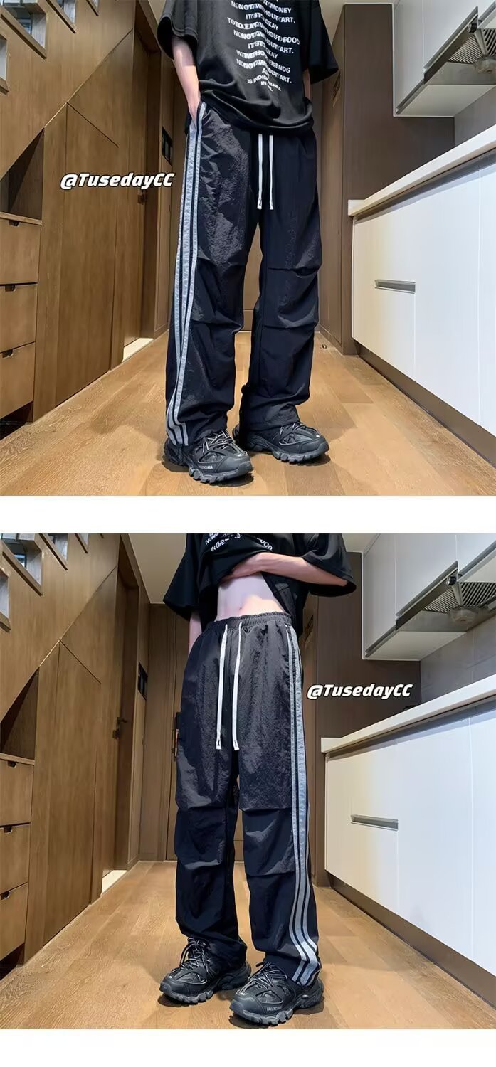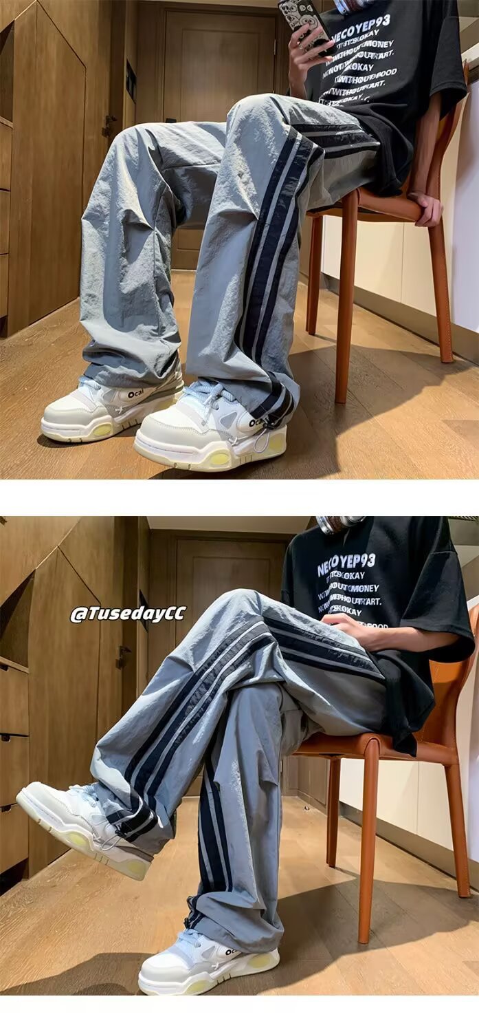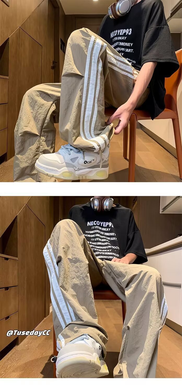 남성용 3스트라이프 속건성 낙하산 바지 여름 얇은 트렌디 브랜드 ins 아메리칸 기능성 캐주얼 스트라이프 스포츠 바지
