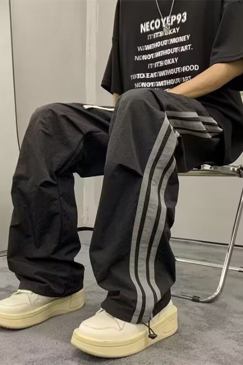 남성용 3스트라이프 속건성 낙하산 바지 여름 얇은 트렌디 브랜드 ins 아메리칸 기능성 캐주얼 스트라이프 스포츠 바지스토어 가기