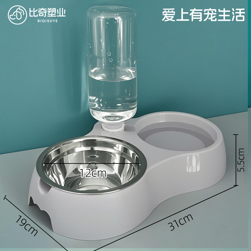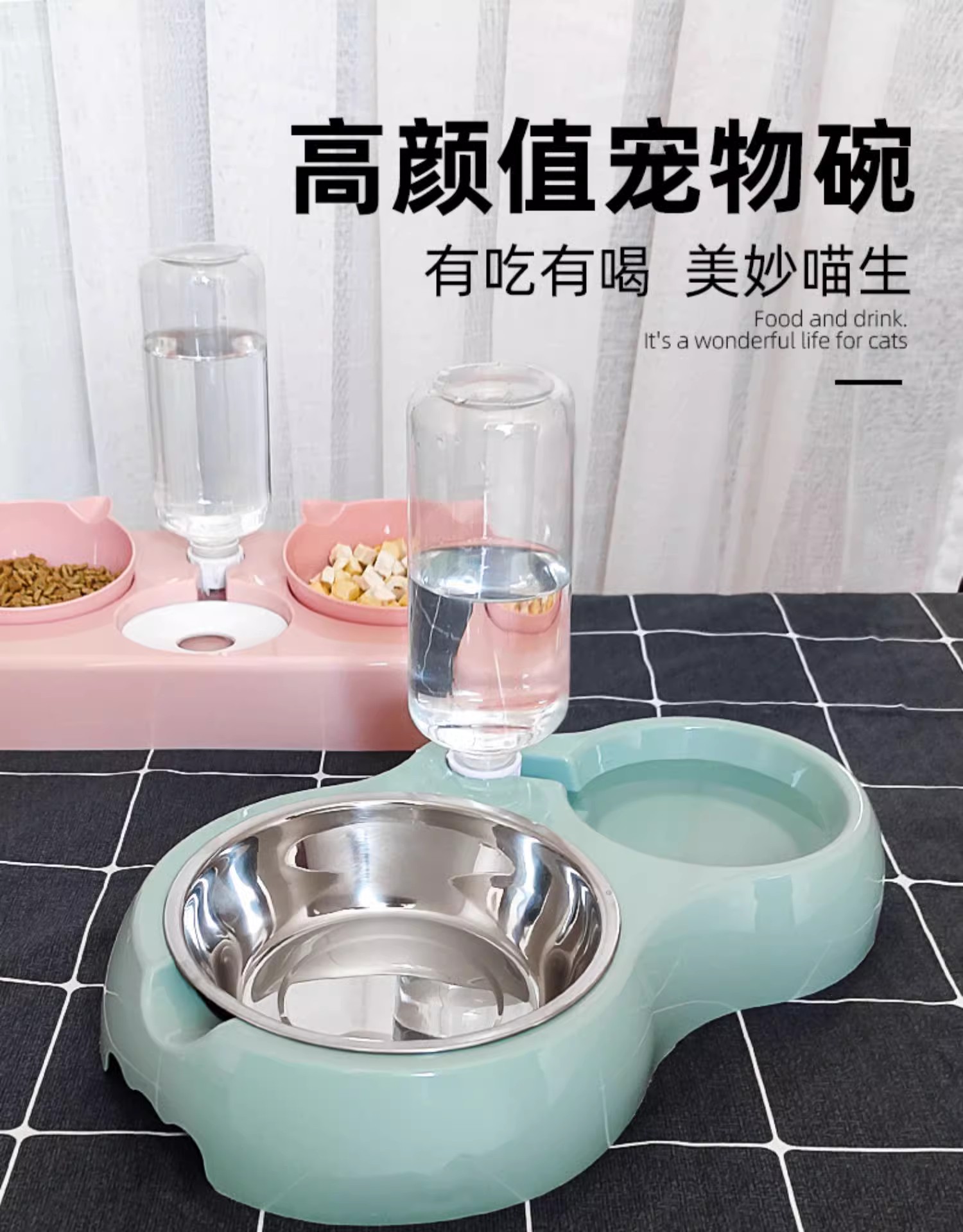 애완 동물 그릇 고양이 자동 물 디스펜서 피더 스테인레스 스틸 더블 그릇 통합 개 그릇 애완 동물 먹이 그릇 도매