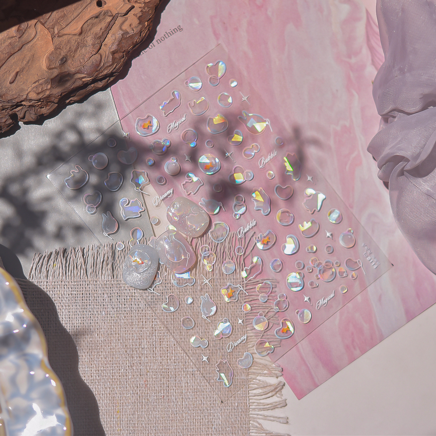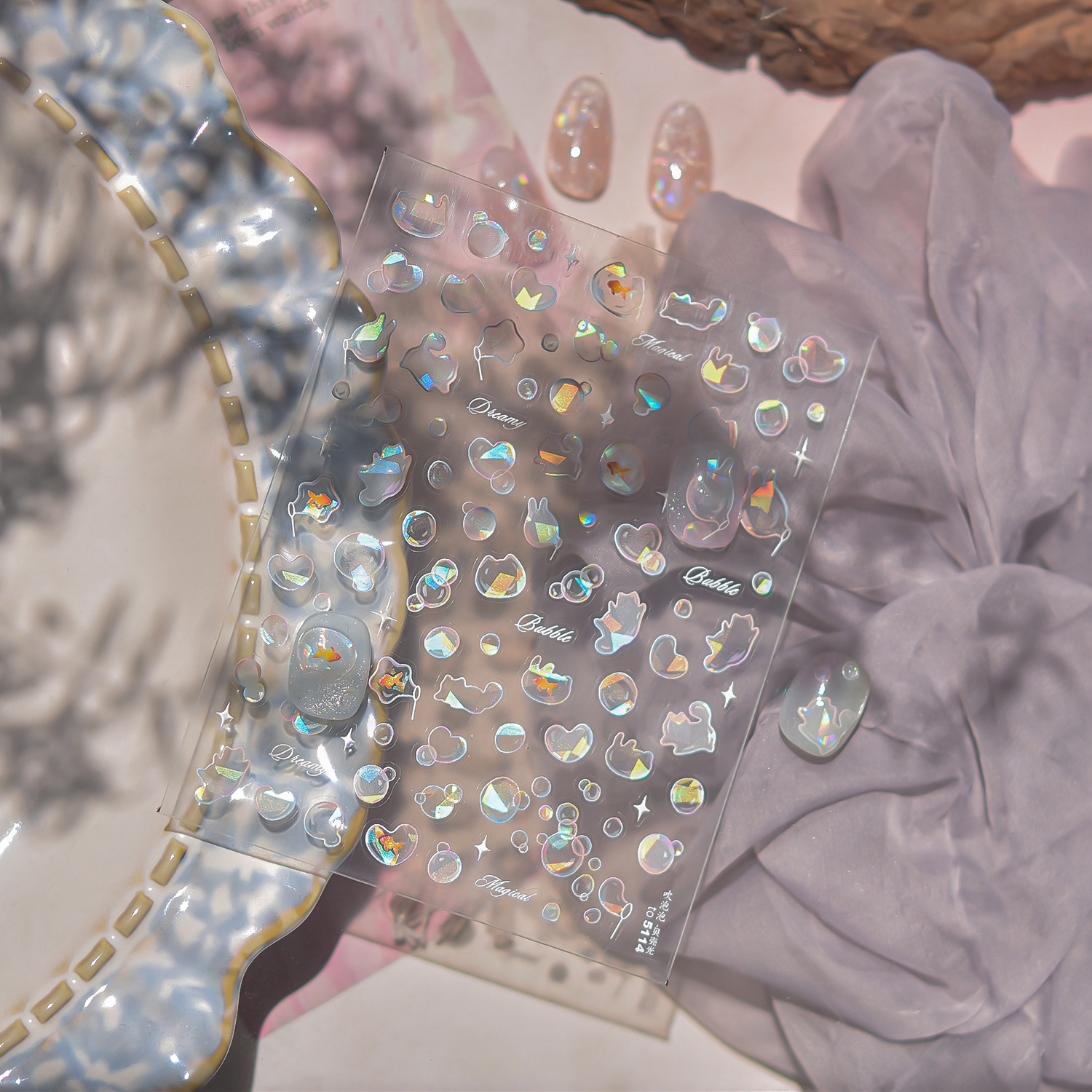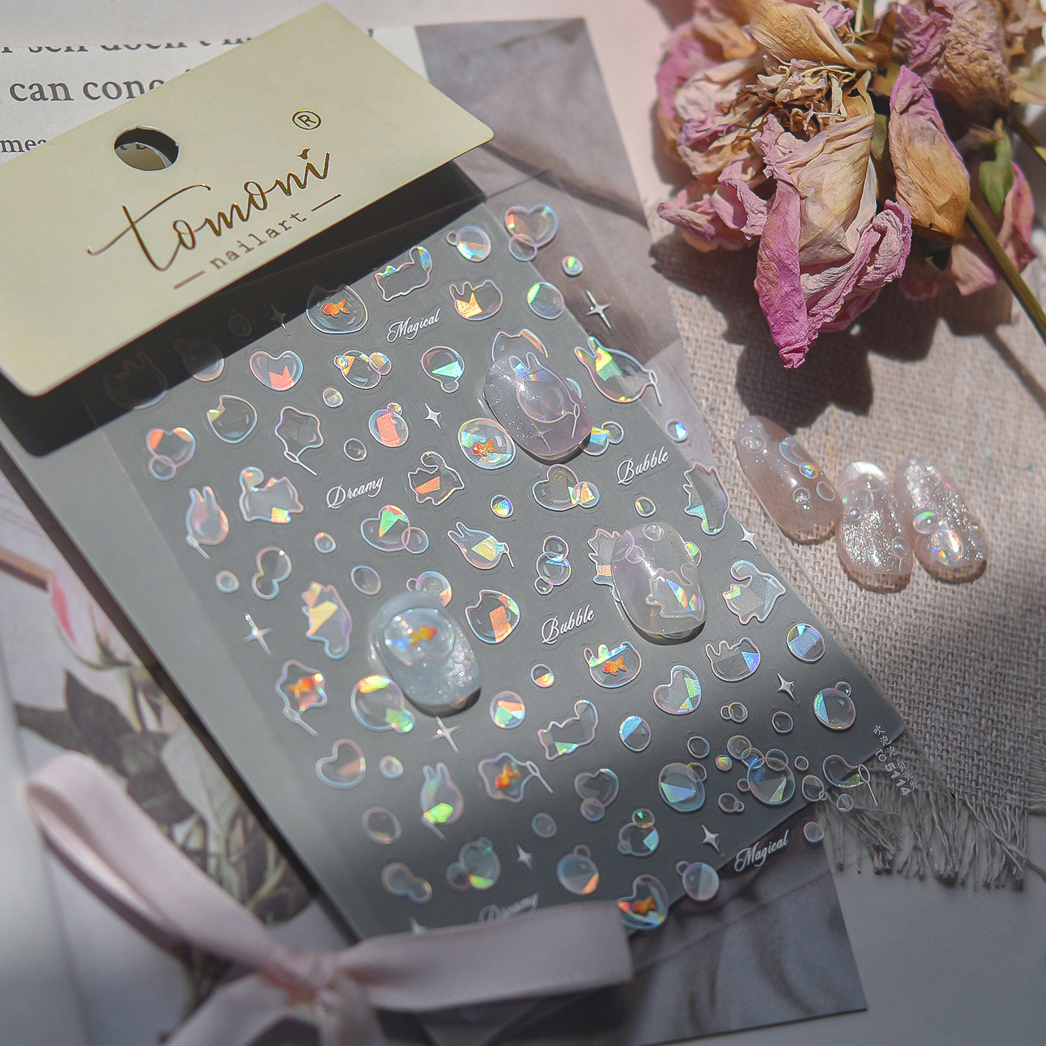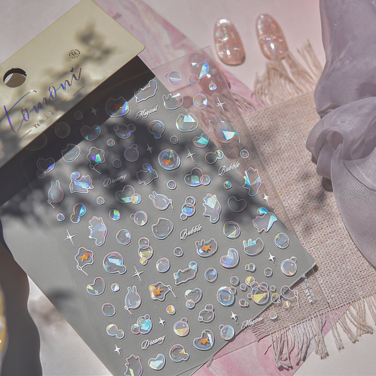 Tomoni 쉘 라이트 네일 아트 스티커 폭발 일본 드림 바람 네일 스티커 부는 거품 네일 아트 보조 스티커