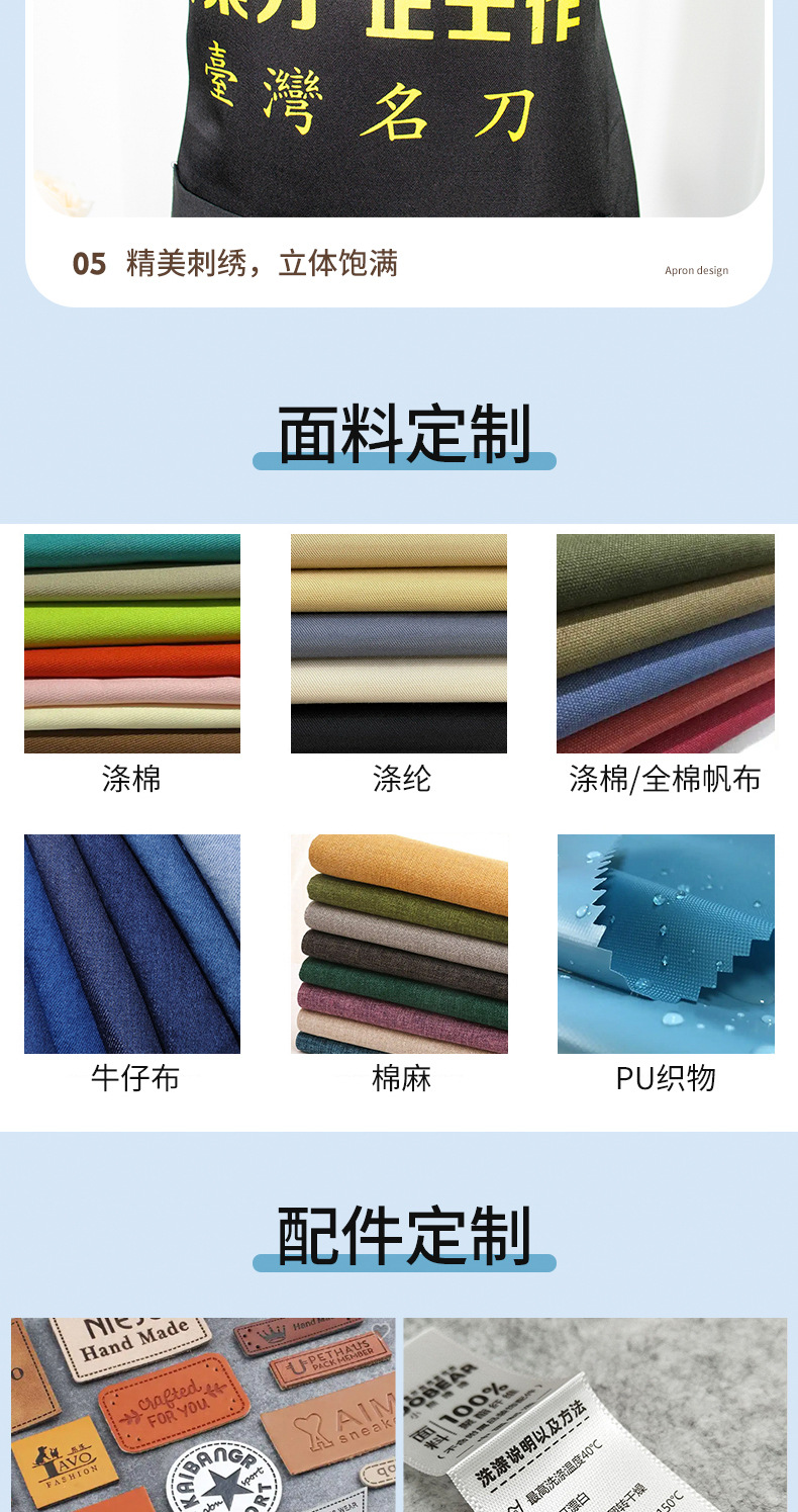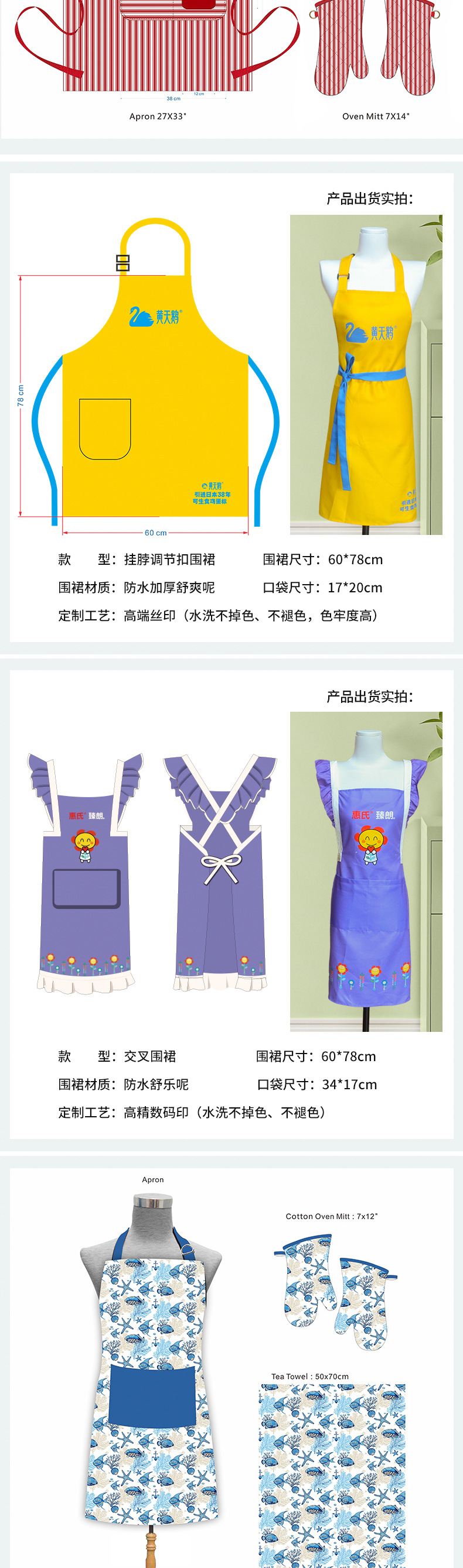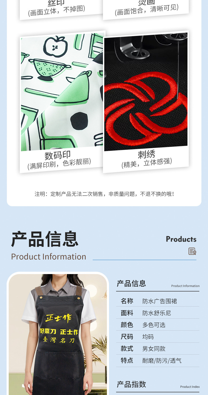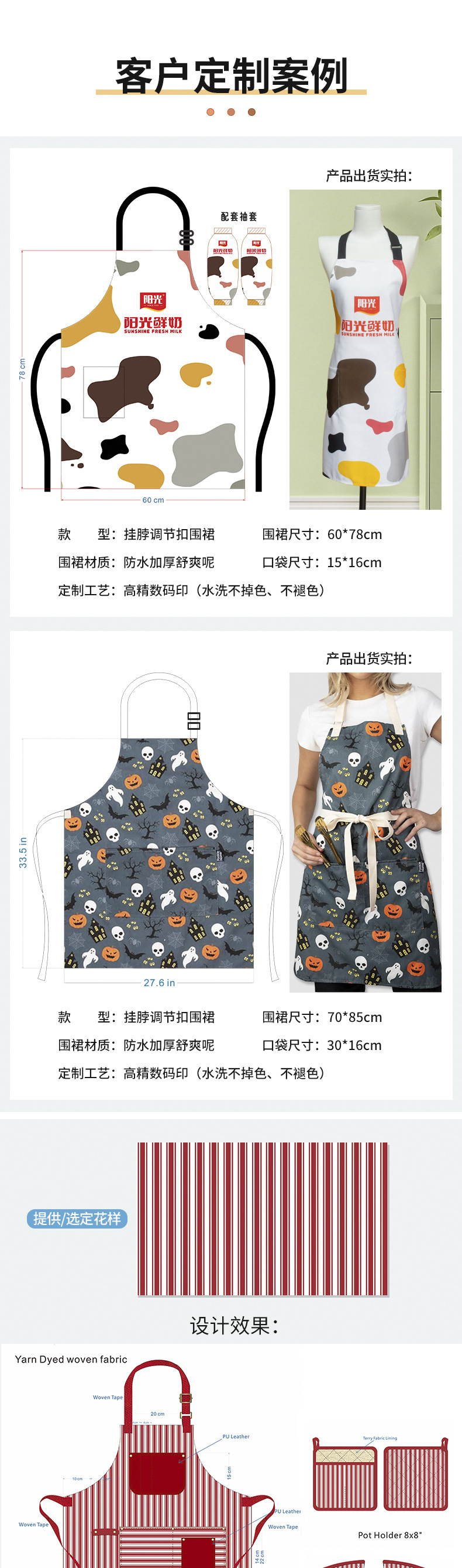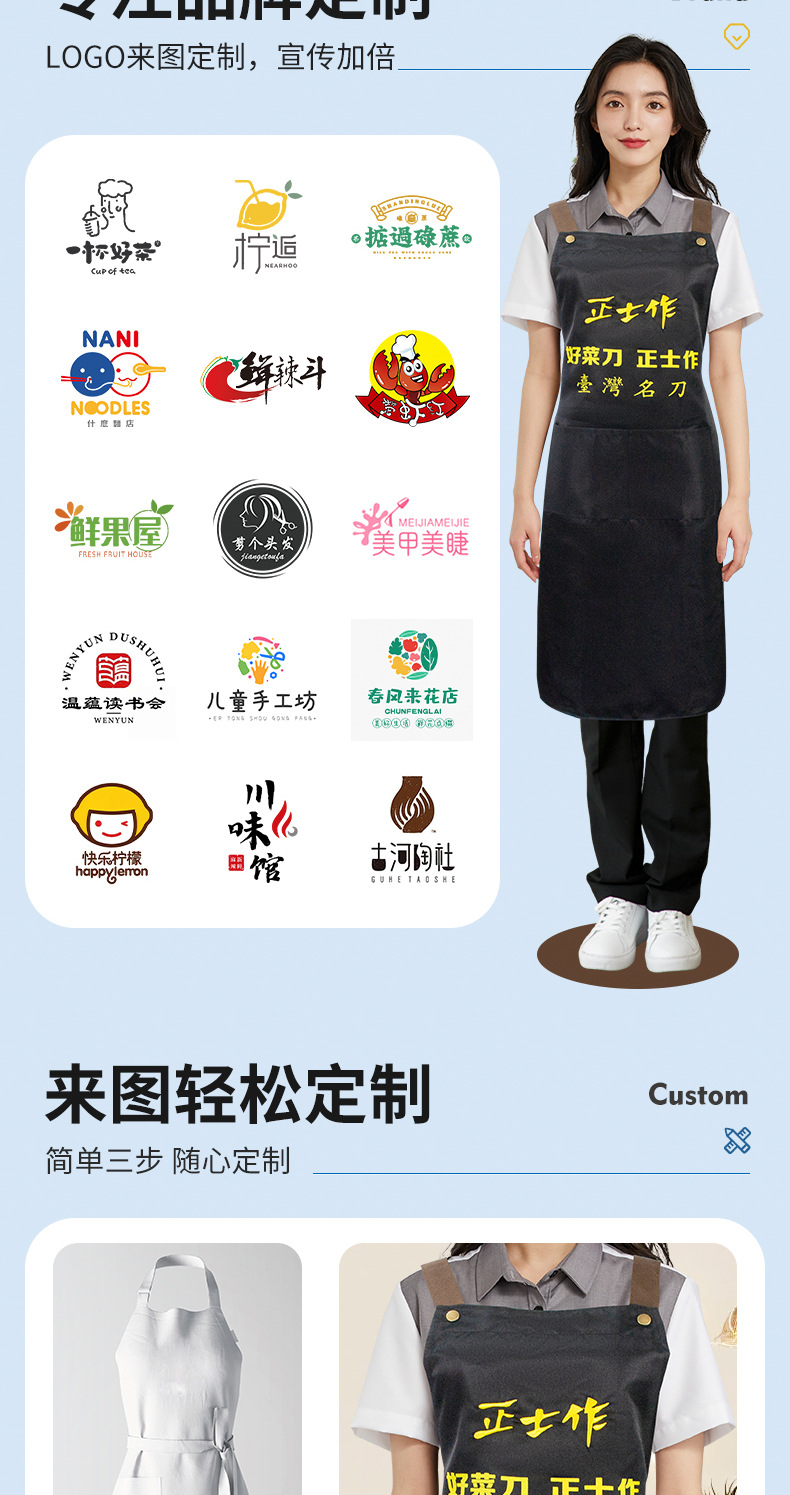 케이터링 호텔 커피 밀크티 샵 웨이터 네이비 블루 방수 작업복 니트 H 어깨 끈 색상 조절 가능한 앞치마