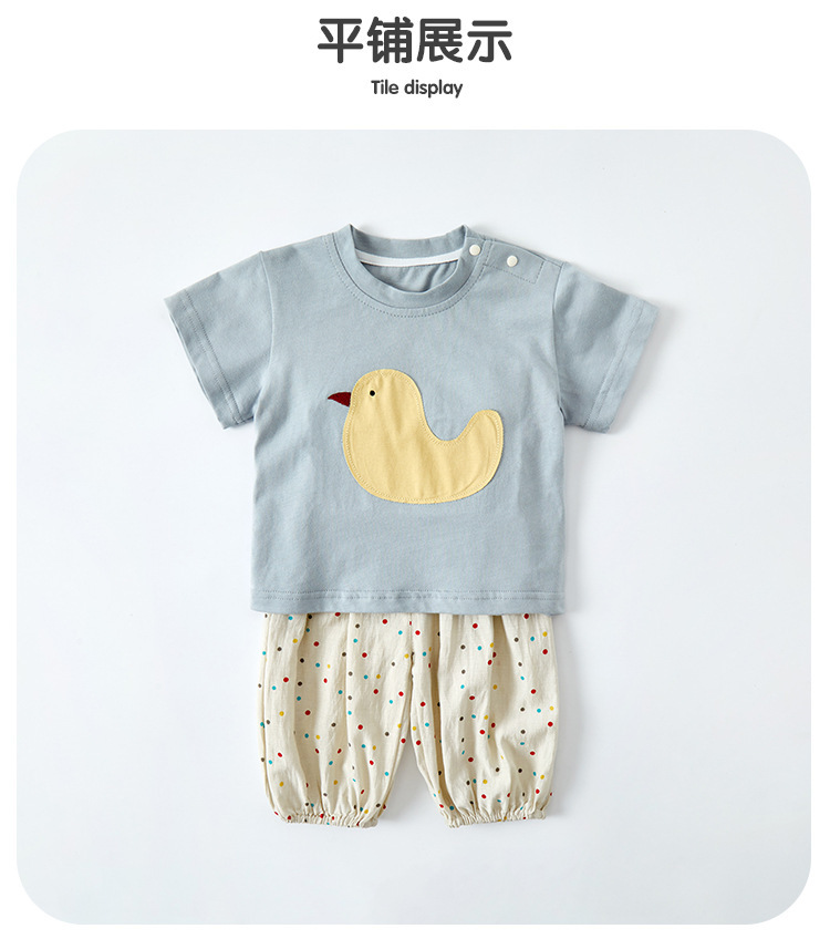 아기 병아리 티셔츠 세트 신생아 여름 탑 폴카 도트 바지 투피스 세트 소년 캐주얼 트렌디 t0033A092스토어 가기