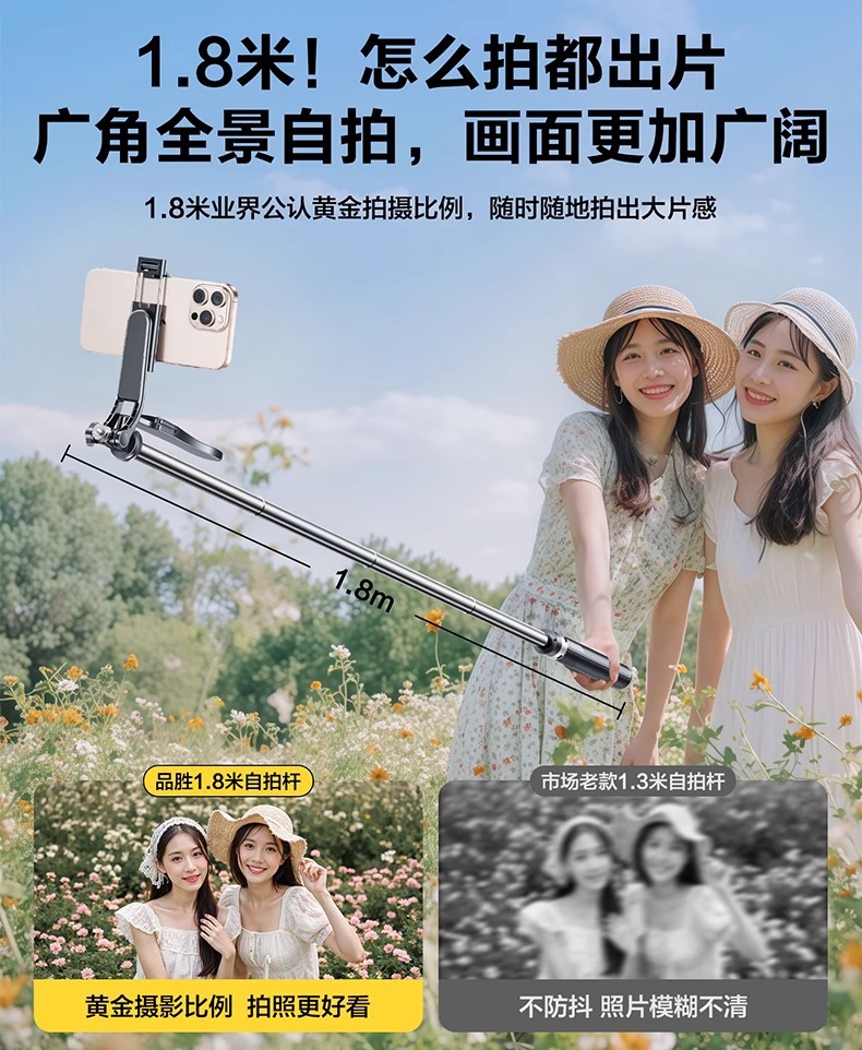 핀셩 셀카봉 여행용 휴대용 스탠드형 방진 블루투스 리모컨 360도 회전 라이브 방송 범용 셀카 도구스토어 가기