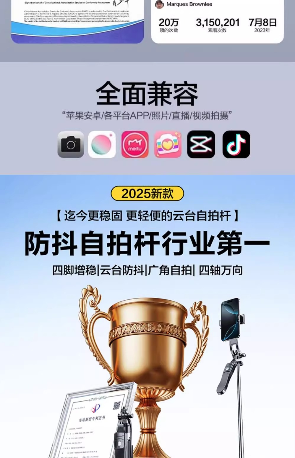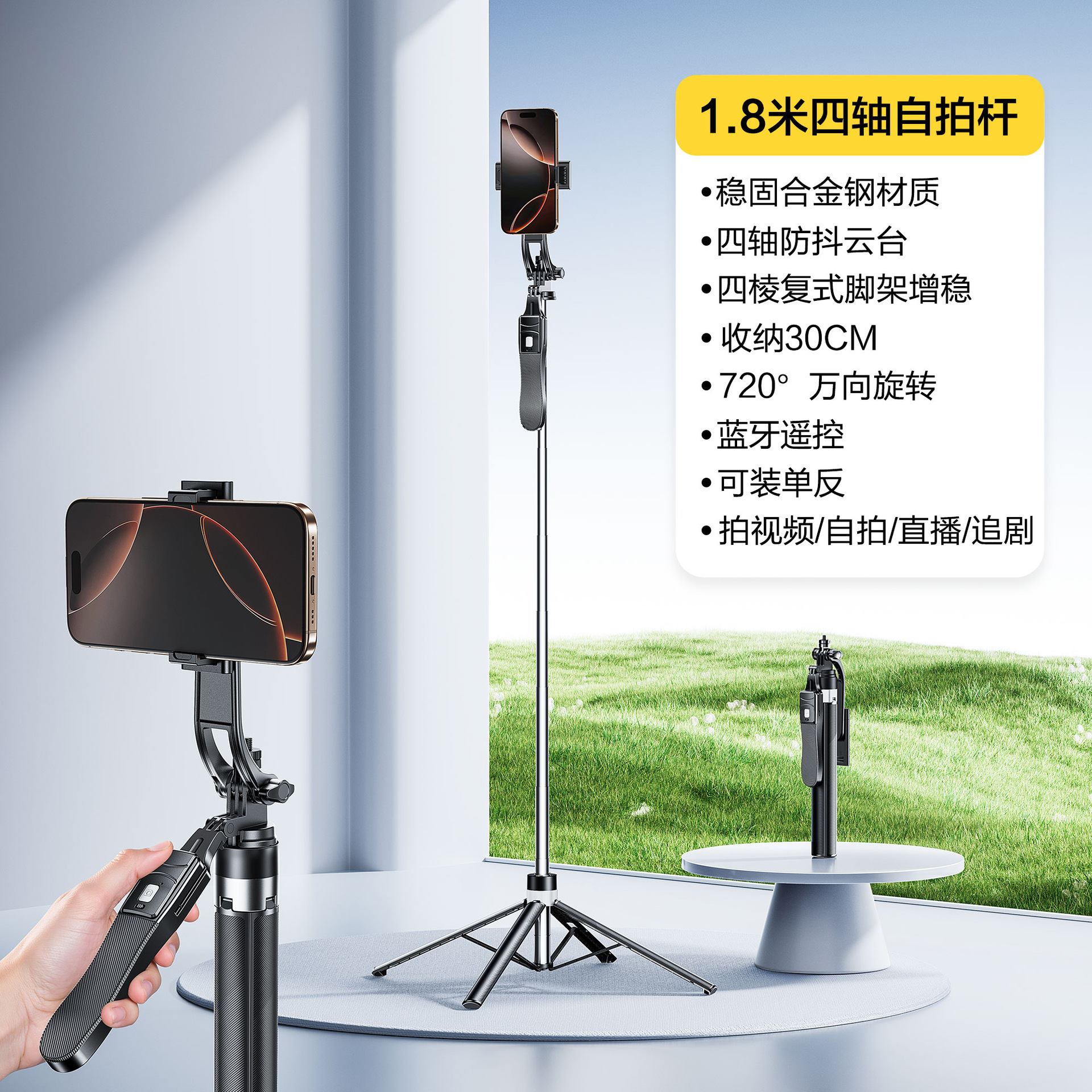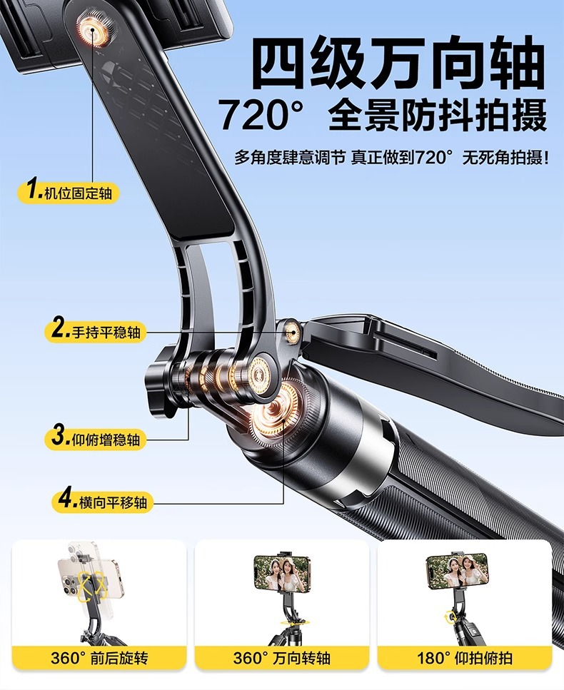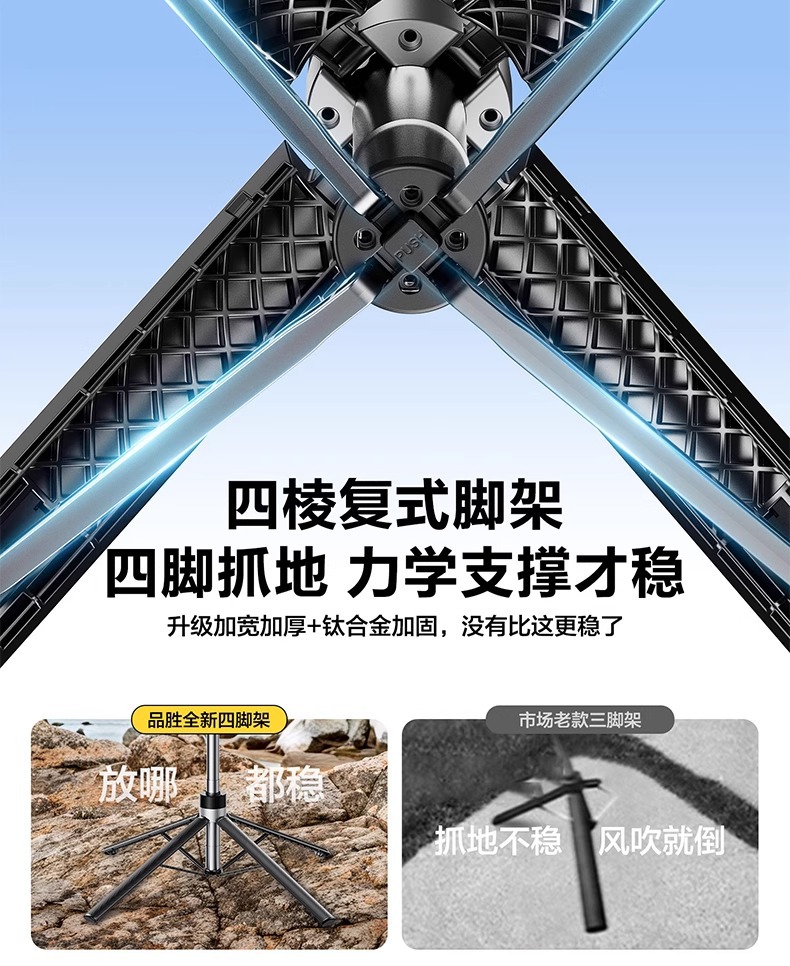 • 1.8m [4축 플로어 스탠딩 모델] 합금강 손떨림 방지 + 블루투스 리모컨 + 안정성을 위한 4각 스탠드