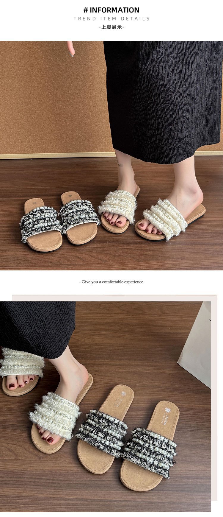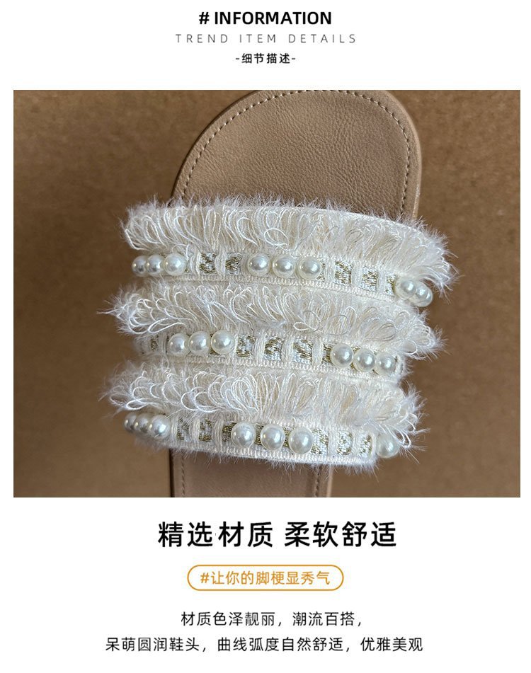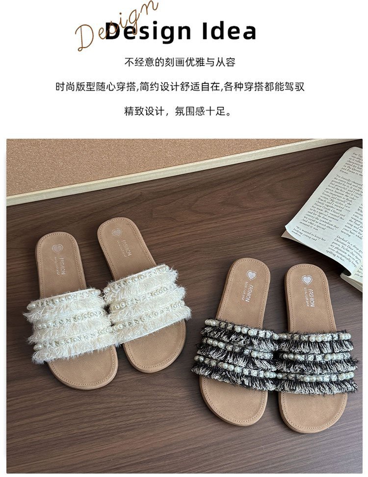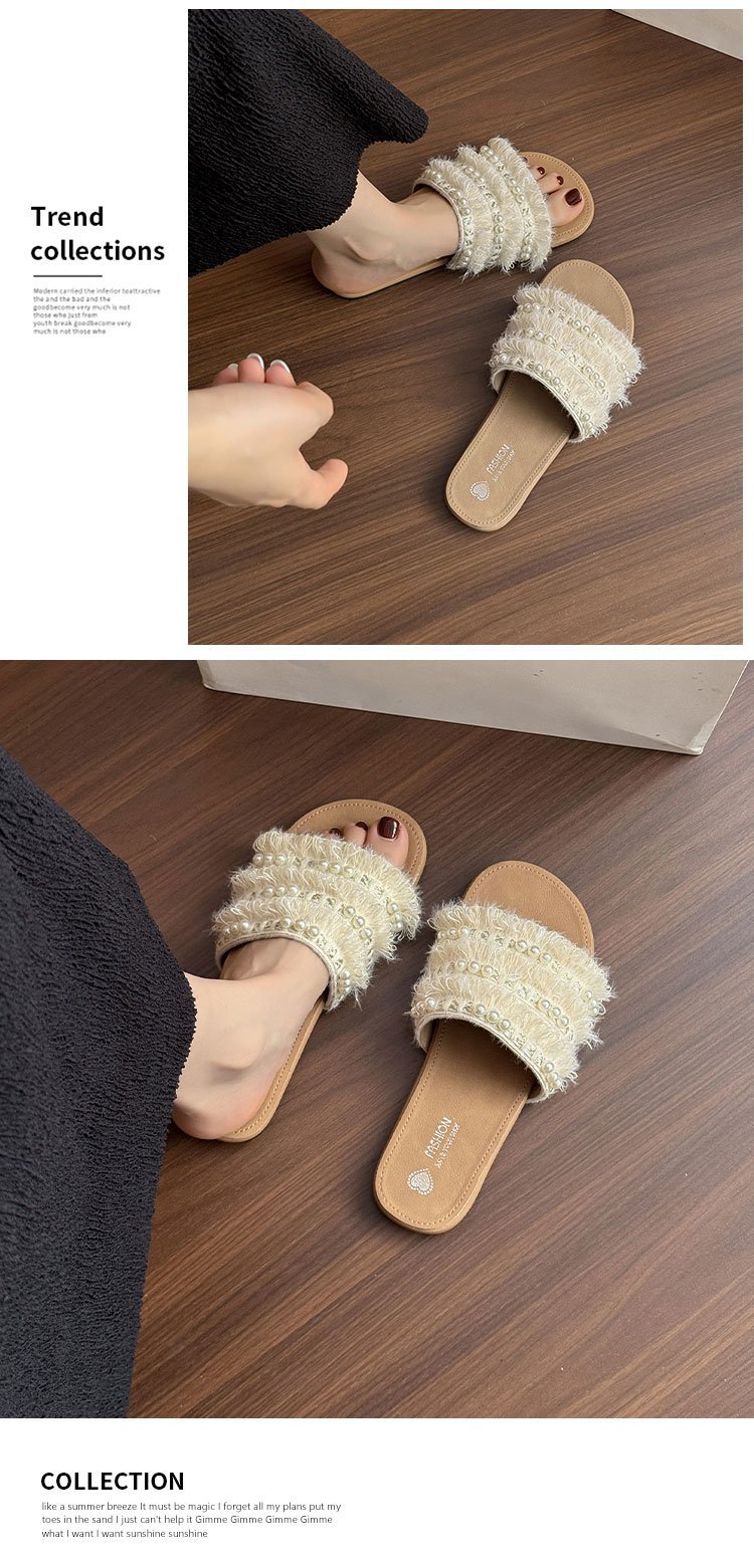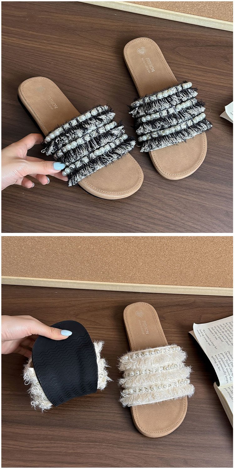 여름 아우터로 착용하는 여성용 진주 슬리퍼 2025 신상 패션 게으른 플랫 바닥 스커트 외출용 비치 샌들스토어 가기