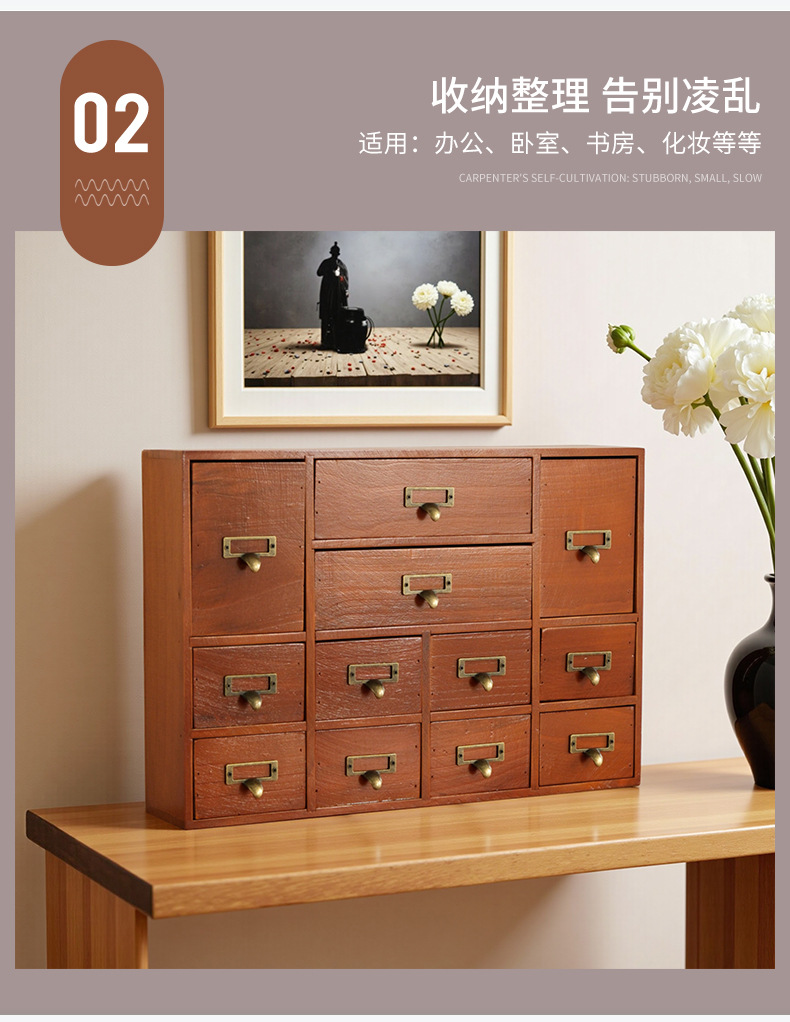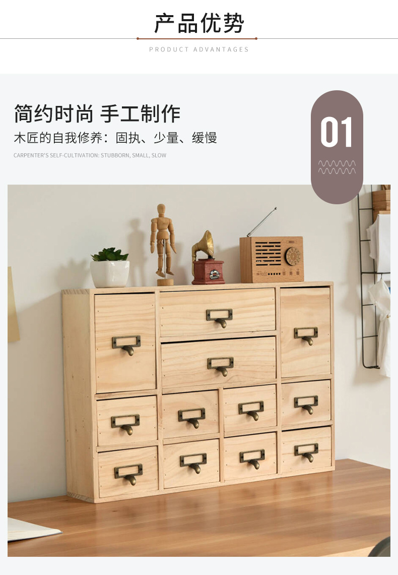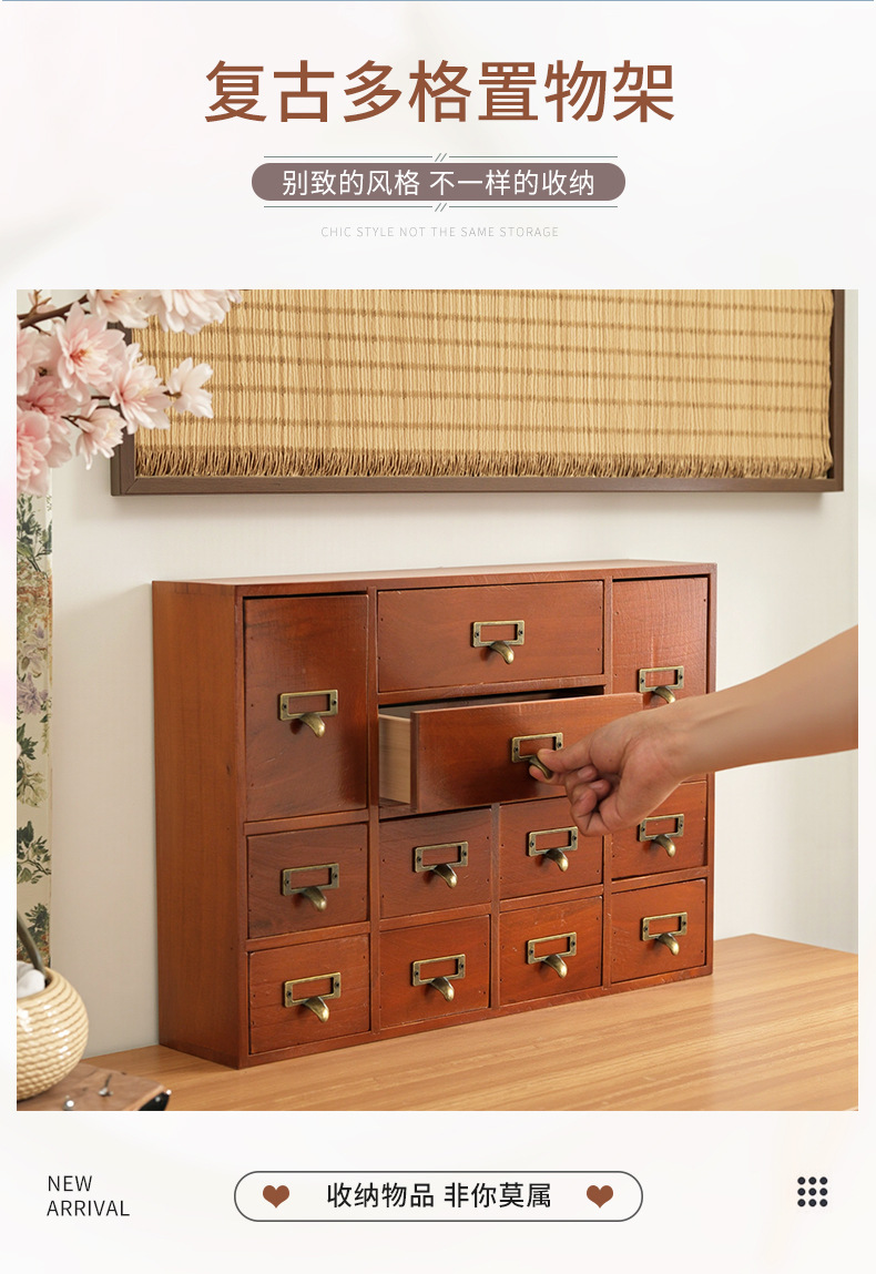 나무 가정용 복고풍 데스크탑 스토리지 캐비닛 서랍 형 대형 책상 다층 테이프 핸드북 티백 스토리지 박스스토어 가기