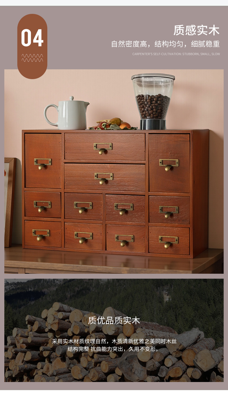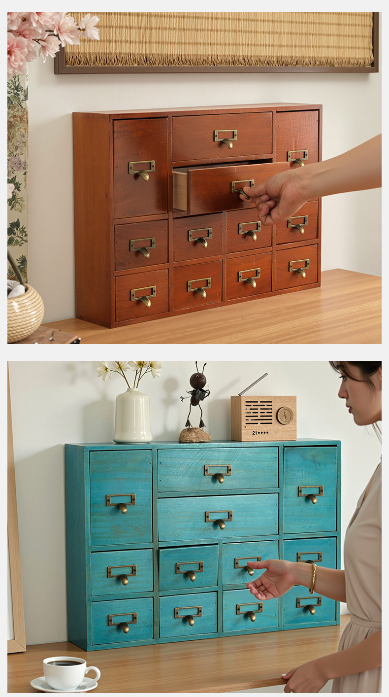나무 가정용 복고풍 데스크탑 스토리지 캐비닛 서랍 형 대형 책상 다층 테이프 핸드북 티백 스토리지 박스