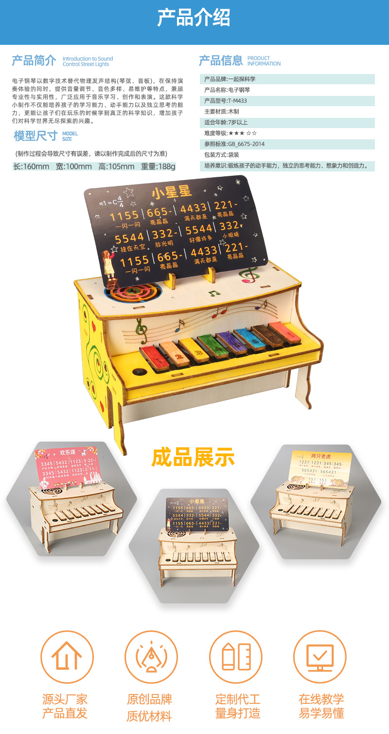과학 기술 소규모 생산 DIY 전자 피아노 어린이 수제 뮤직 박스 과학 실험 증기 장비 교육 보조 장치