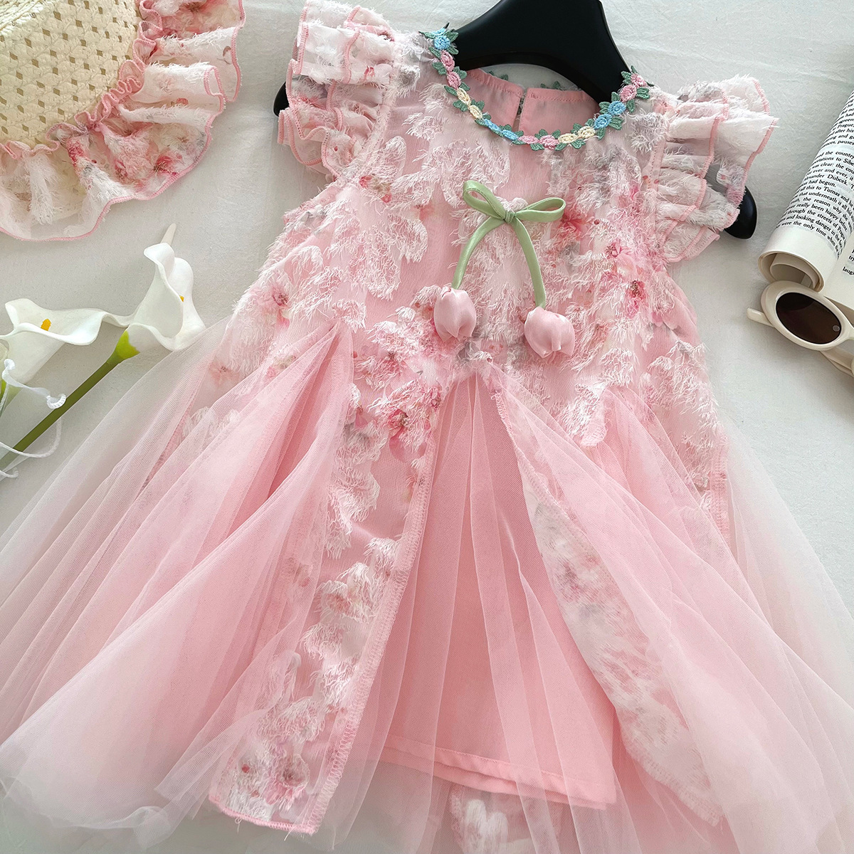 2025 새로운 여자 메쉬 드레스 여름 여자 민소매 드레스 유행 공주 슈퍼 요정