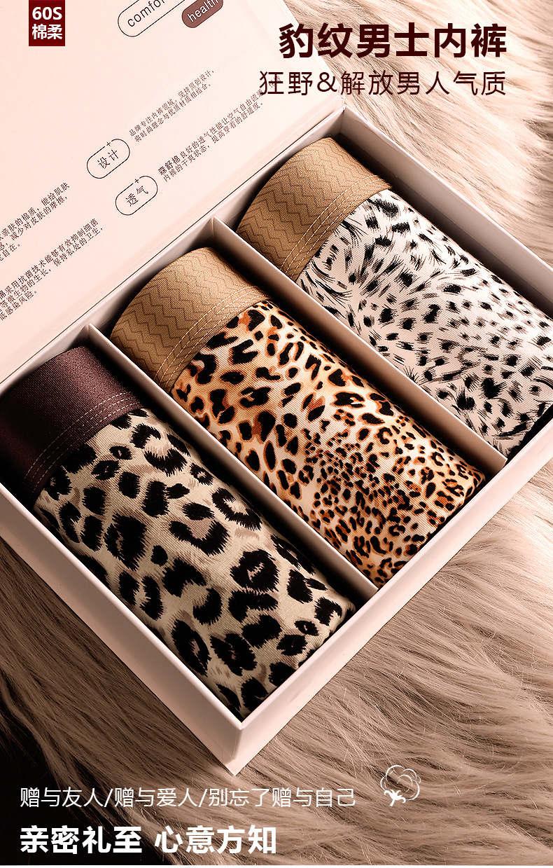 레오파드 프린트 남성 속옷 순면 편안한 복서 팬티 7A 항균 가랑이 봄 여름 새로운 패션 섹시한 소년 복서 팬티스토어 가기
