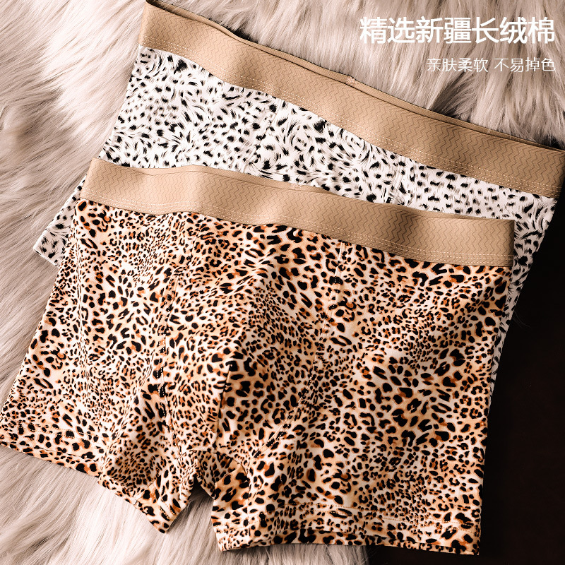 레오파드 프린트 남성 속옷 순면 편안한 복서 팬티 7A 항균 가랑이 봄 여름 새로운 패션 섹시한 소년 복서 팬티